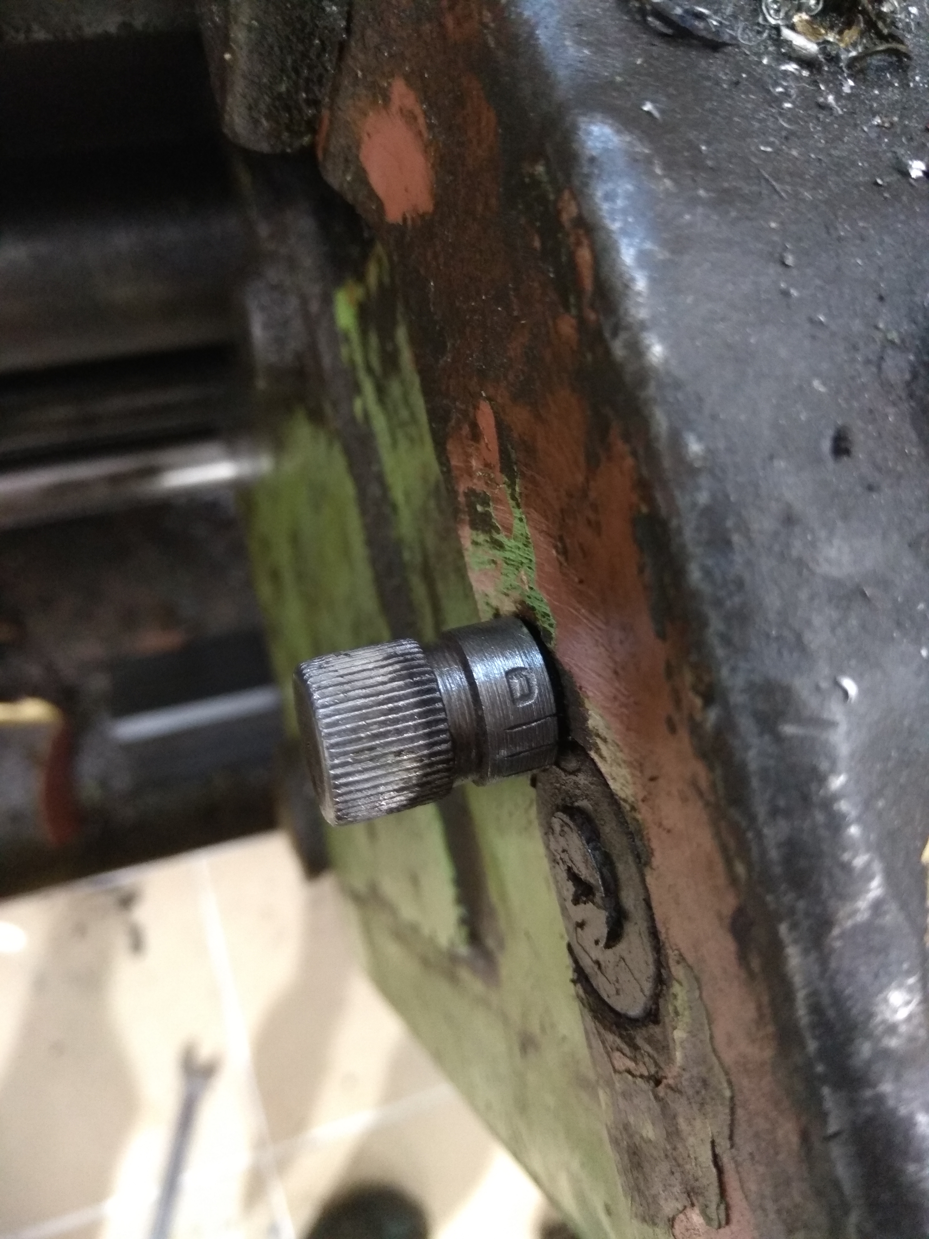 Dale jsem tedy sundal ten regulační šroub pro mazání saní, není jen na okroužku ale drží jej z boku ještě podložka která je v zapichu toho "šroubu", po demontáži jde vytáhnout, o kroužky jsou tam 2ks. Přívod do šroubu v ose a vývod do boku. Max dodávka oleje na saně je písmenem D nahoru.