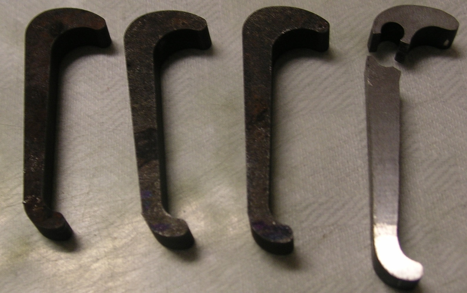 no škoda, že sis nenechal vyříznout i tu díru, bylo by to nyní již bez práce. Vrtej to v nějakém přípravku (dorazy z kostek, ze zavrtaných kolíků v desce...), aby díra byla na stejném místě (aspoň +/- 0,04mm), aby ty tři páky zabíraly všechny stejně. A.