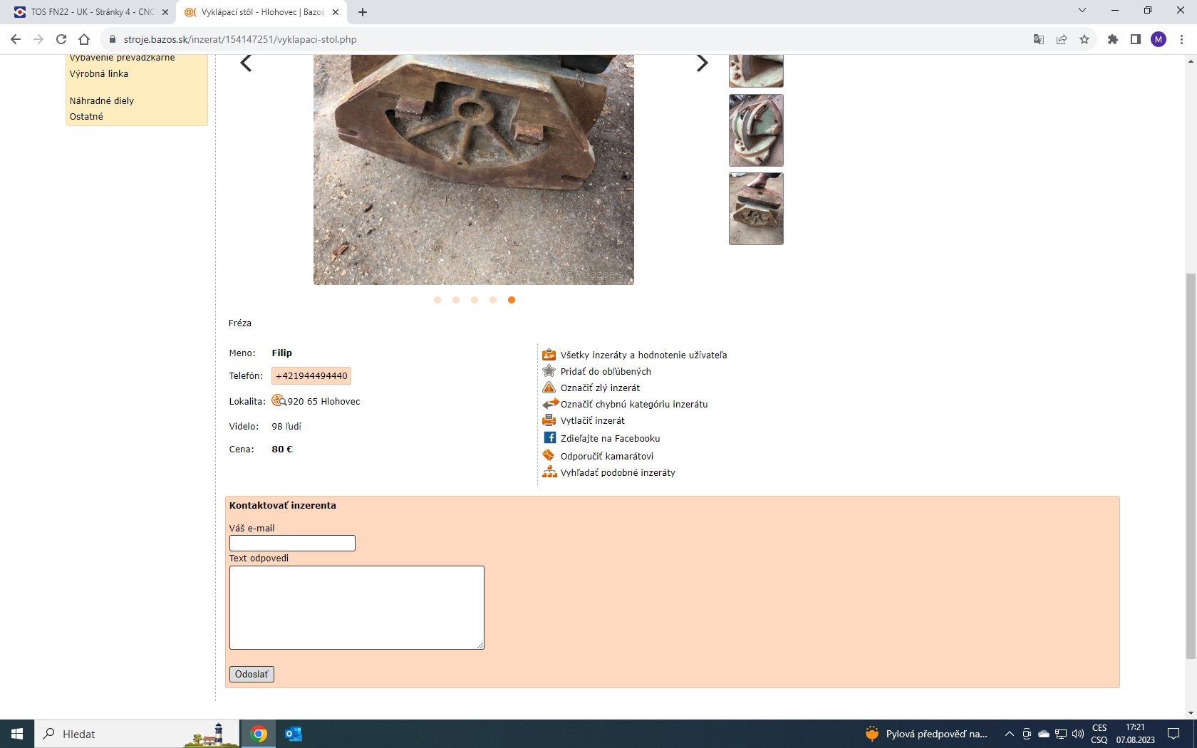 Prosím, byl by někdo ze slovenských kolegů ochoten pro ten kus litiny do Hlohovce zajet, koupit a poslat to Peterovi do UK?