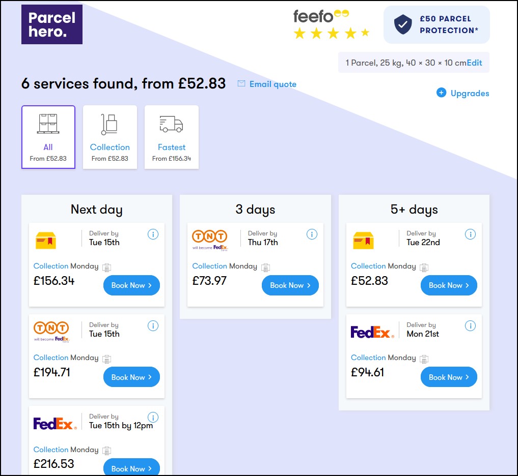Looking at options from this end the cheapest is about £60 which is quite acceptable.