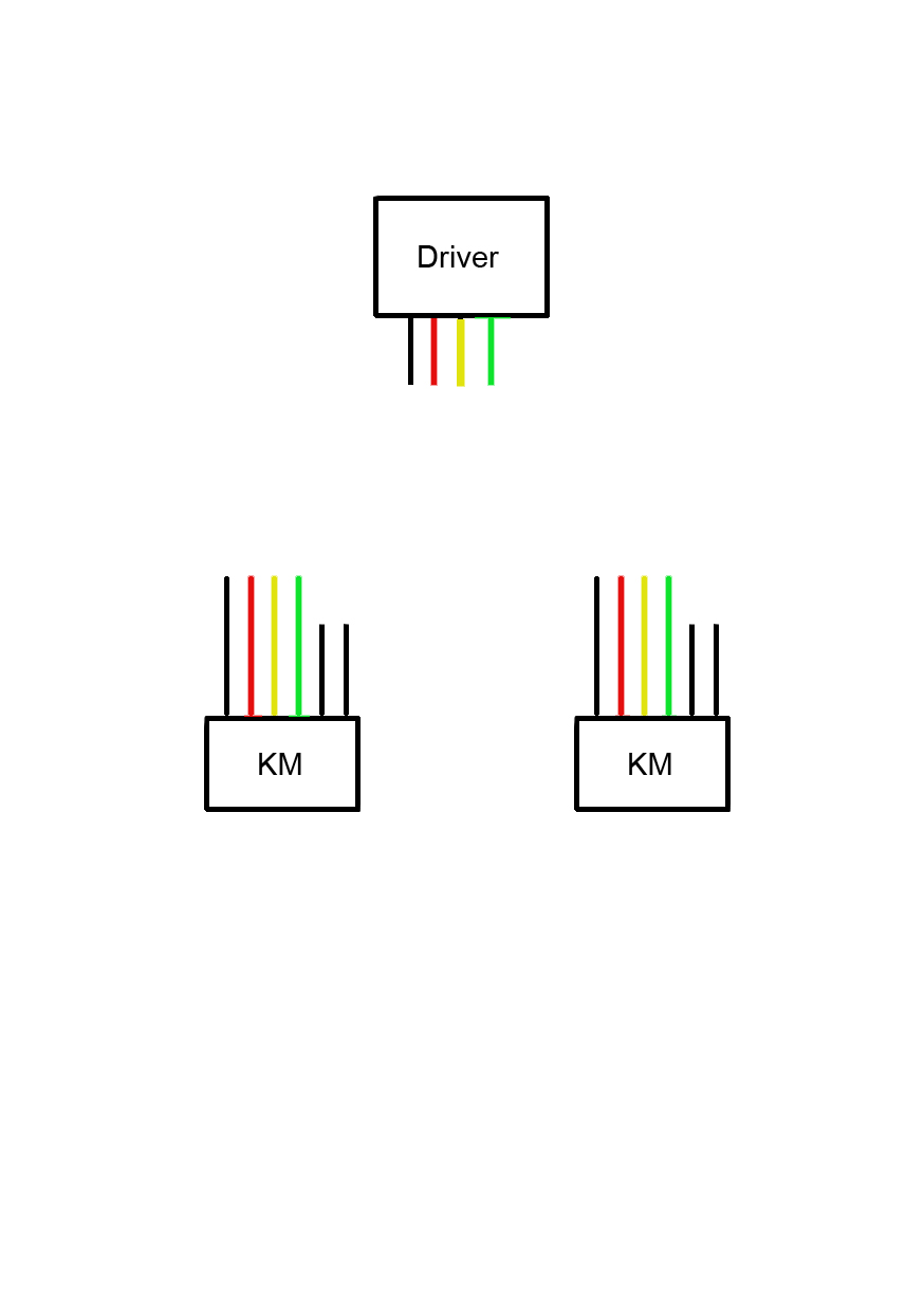 driver cierna na ciernu prveho motora, cervena potom na ciernu druheho motora a cervena z druheno motoru na driver.