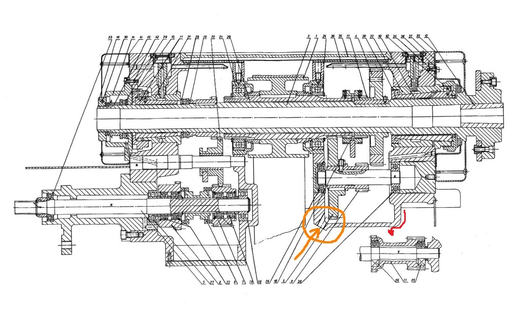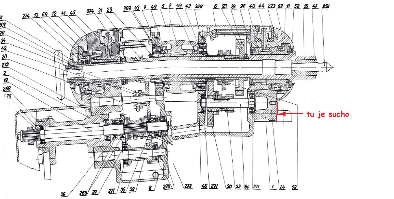 Tak problém je vyřešený a olej neklesá (ani při velkém tlaku). Problém byl v tom, že se vřeteník na pravé straně - u sklíčidla (viz obrázek) naplnil a neodtékal. Někdo z předchozích "údržbářů" vše důkladně olepil silikonem a při rozebírání se kousek uvolnil a "přiucpal" odtokový otvor. Když se páka předlohy posune do polohy 1:8, je shora na otvor krásně vidět a jde vyčistit. Takže jsem zatím zvítězil. :D Uvidíme, jaký bude další problém.