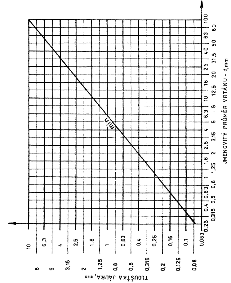Pokud by někoho minimální normalizovaná tloušťka jádra zajímala a měl problémy s odečítáním na logaritmické ose tak lze spočítat dle