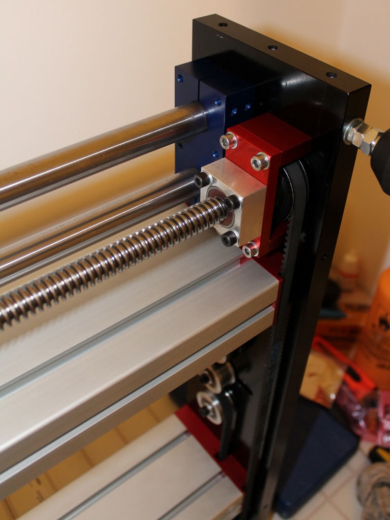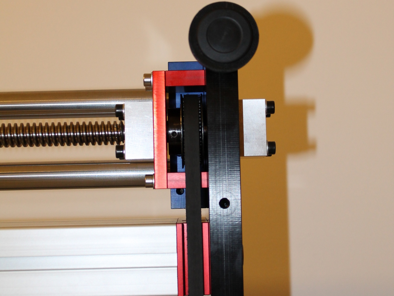 "vetknuté" uložení "volného" konce trapézových šroubů osy X + řemenice spřažení