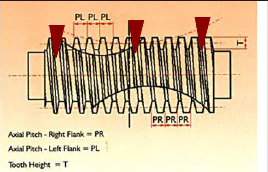 Právě díky té rozdílné šířce se dá posunem šneku vymezit vůle na minimum. Je to o šířce zubu ne o změně stoupání (oni pouze tou změnou stoupání mění tu šířku).