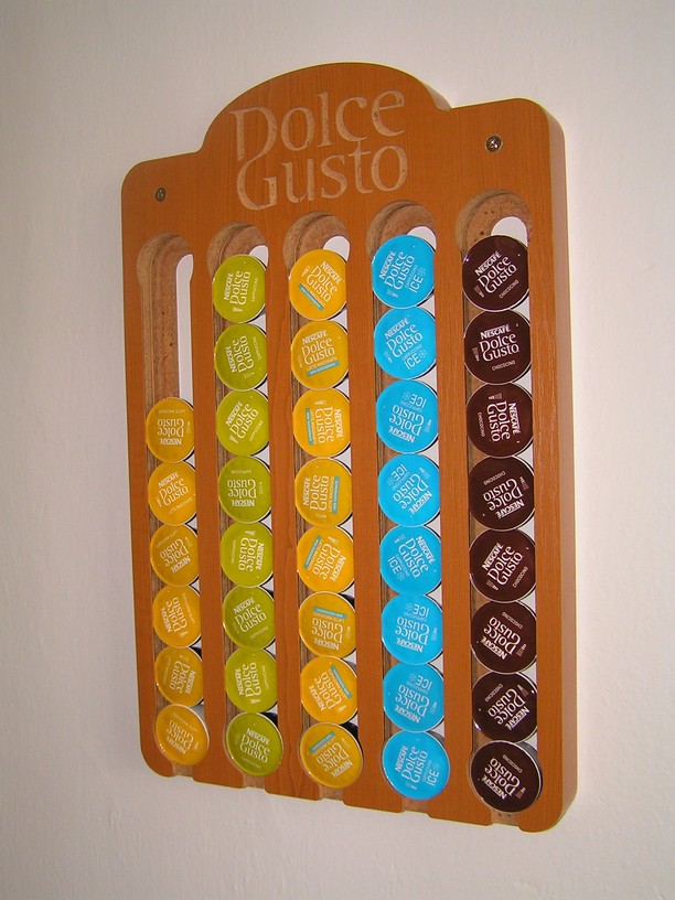 A opět nějaký ten výtvorek, stojan pro manželku na kapsle do kávovaru. Jde o 2 desky lamina 620x350x18mm, následně sešroubované a ohranované. Kapsle se horním vybráním vkládají a zespod přes vybrání jdou vyšprtávat.