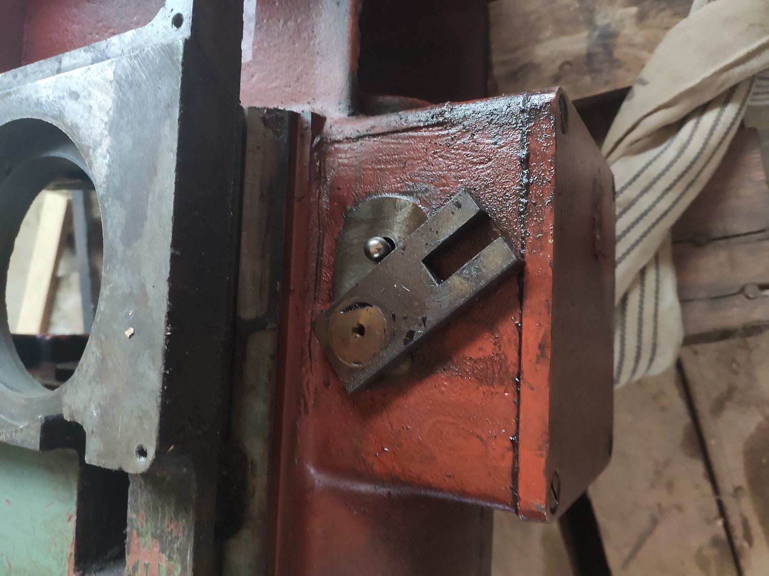 Po generálce bude vřeteník napasovaný na loži a nechci ho kvůli montáži tohohle mechanismu shazovat dolů. Hádám, že tu páčku, co je na fotce, mi tam budou muset dát v moosu při nasazování vřeteníku. Páčku, co je na nasazená na tisícihranu uvnitř vřeteníku, si tam dám sám. Co pružinka a kulička, je reálné ji tam osadit skrze ten kulatý otvor v loži, kudy se tenhle mechanismus napojuje na nortonku? Bohužel jsem si to nevyzkoušel při rozborce a teď už mám vřeteník odvezený... Kdyby to nešlo, tak i pružinku a kuličku musejí dát v moosu, pak ale bude nutné páčku nějak zafixovat, aby kulička a pružinka při transportu nevypadli. Nortonku v moosu mít nebudou, tu si nasadím až doma.