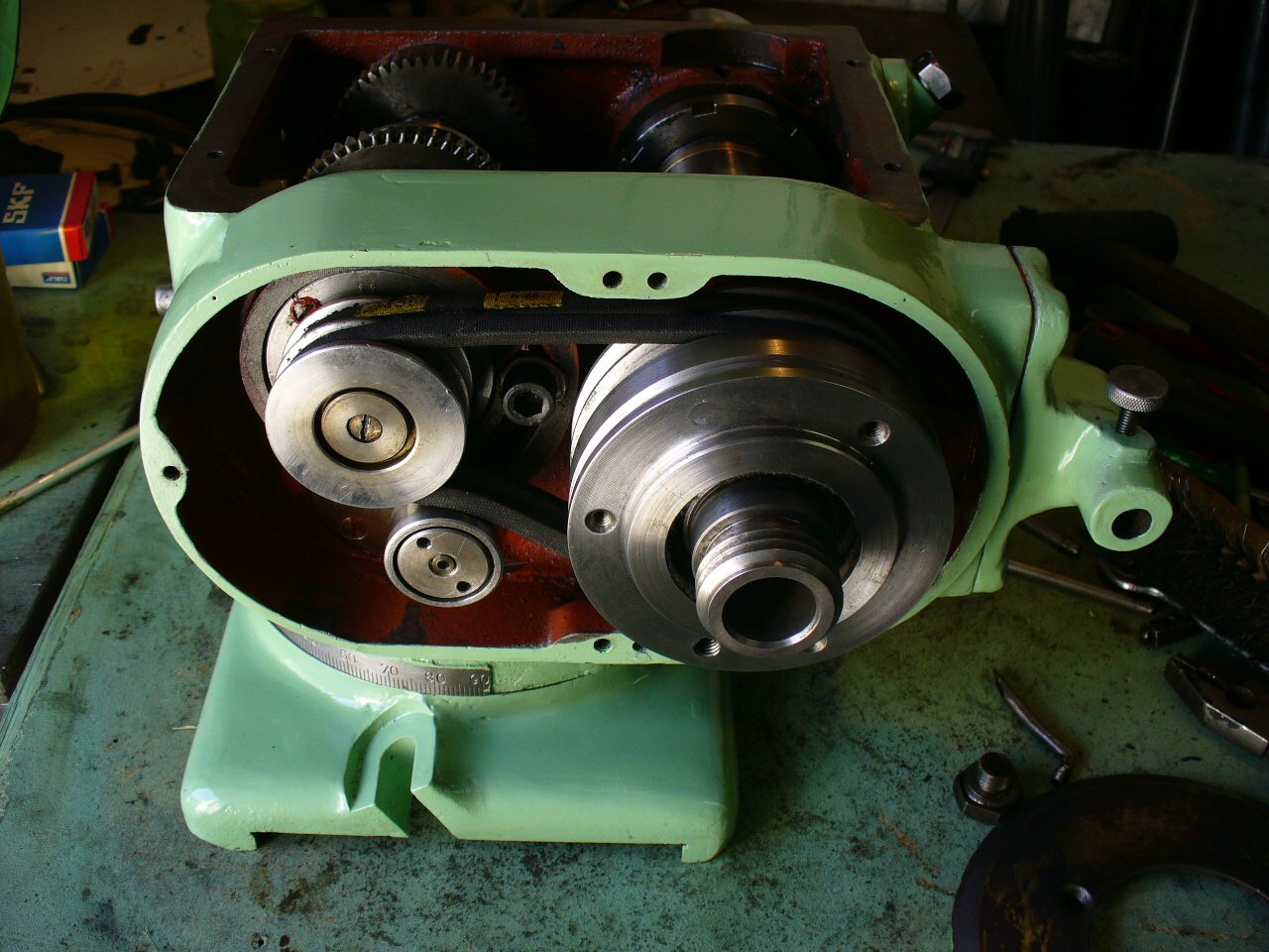 jinak včera jsem osadil motor a provizorně staré řemeny abych mohl zkusit vřeteník, olej OL-J3, nechal jsem to běžet asi půl hodiny na 2500ot. a ložiska jsou jen mírně vlažné, šlo mě o to, jestli jsem všechno dobře zatěsnil, po půl hodině je to suché jako pepř, krásně řetízkuje v těch olejoznacích :)