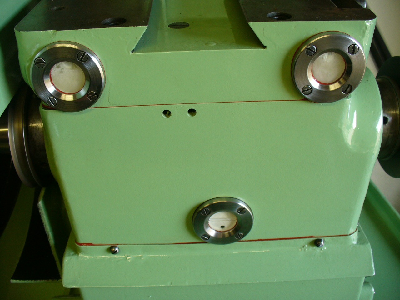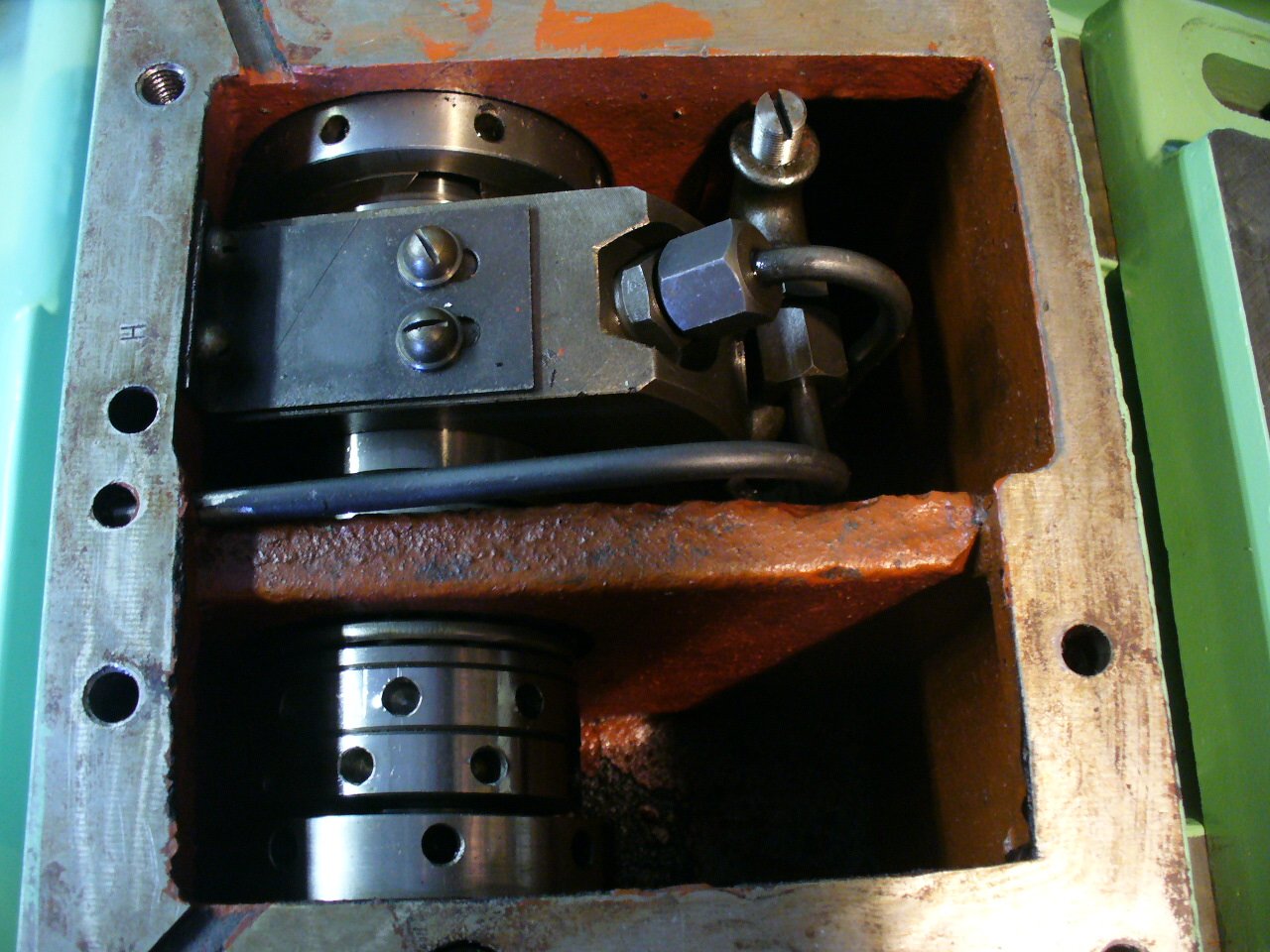 Tady je to čerpadlo na vřeteni, tlakuje to hodně slušně, do té skříně někdo nalil hodně hustej olej takže to stěží do těch olejoznaků vytlačilo, ta J3 to pěkně natlakuje, vnitřek skříní ničím nenatírám, když tam ta barva vydržela 70 let, tak bude asi dobrá :D , černé chráničky na elektriku jsem chtěl vyhodit a dát tam nové plastové, po očištění jsem zjistil, že jsou krásné mosazné, řemenici na motoru musel někdo vyrábět, když jsem to měřil, tak jsem nevěřil vlastním očím, házelo to tak 0,5mm v těch lůžkách pro řemen, tak jsem to přetočil přímo na rotoru přes lunetu a ložisko
