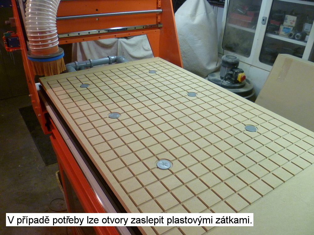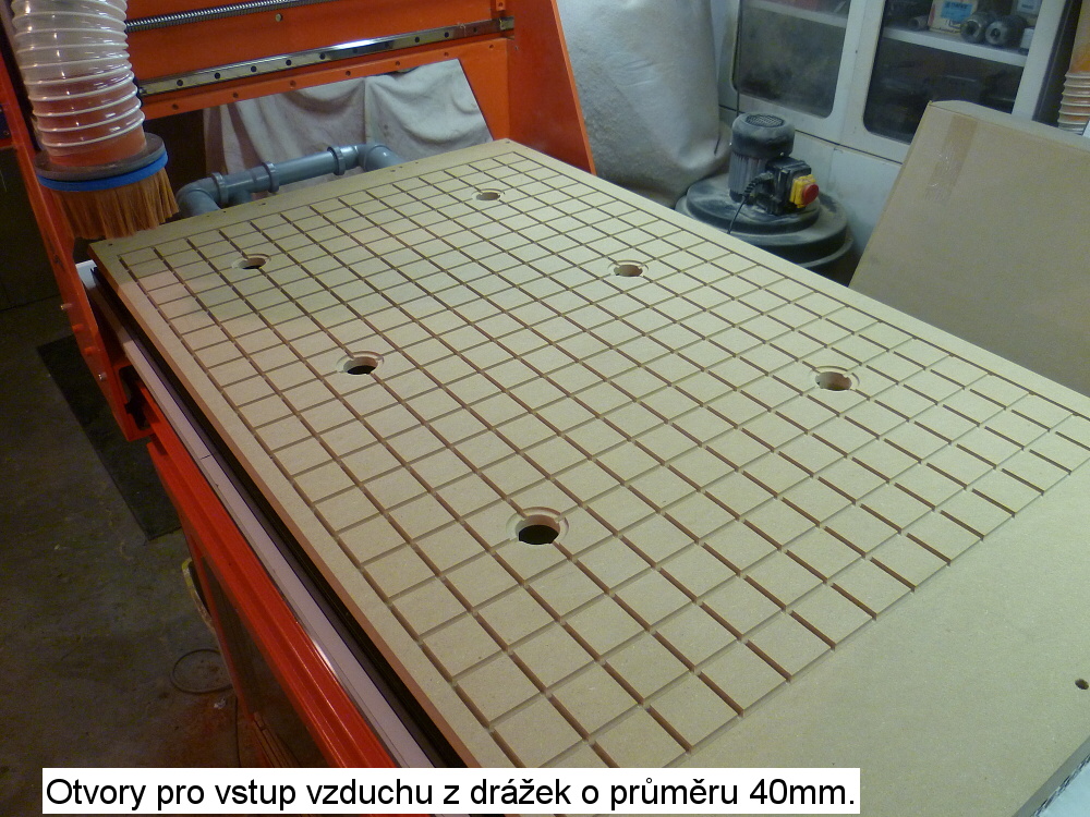 Tak se musím omluvit za mystifikaci. Nezávisle na předešlém příspěvku jsem po propojení dmychadla se stolem provedl zkoušku. Ono to na Depron funguje naprosto spolehlivě i bez těch otvorů. Takže MDF je prodyšná.