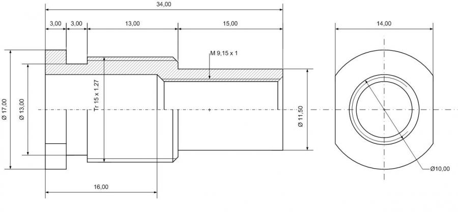 Pro Francotirador - Závity pro tuto redukční matku jsou Tr15x20/1stupeň - tj průměr 15mm,20 závitů na palec,jeden stupeň úhel boku závitu, dále závit dříku stromečkové kleštiny 9,15x1 - dle výrobce kleštin. Ostatní rozměry na plánkách nejsou co se týče přesnosti tak limitující.