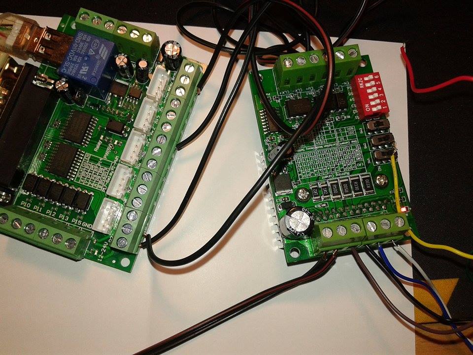 Ty motory jsou připojený blbě (modrej a bílej jsou každej z jiný cívky; btw. o jakou konfiguraci se pokoušiš?). Začni jednou osou, ať to neodpálíš najednou všechno. A foť to tak, abysme měli šanci to zkontrolovat.