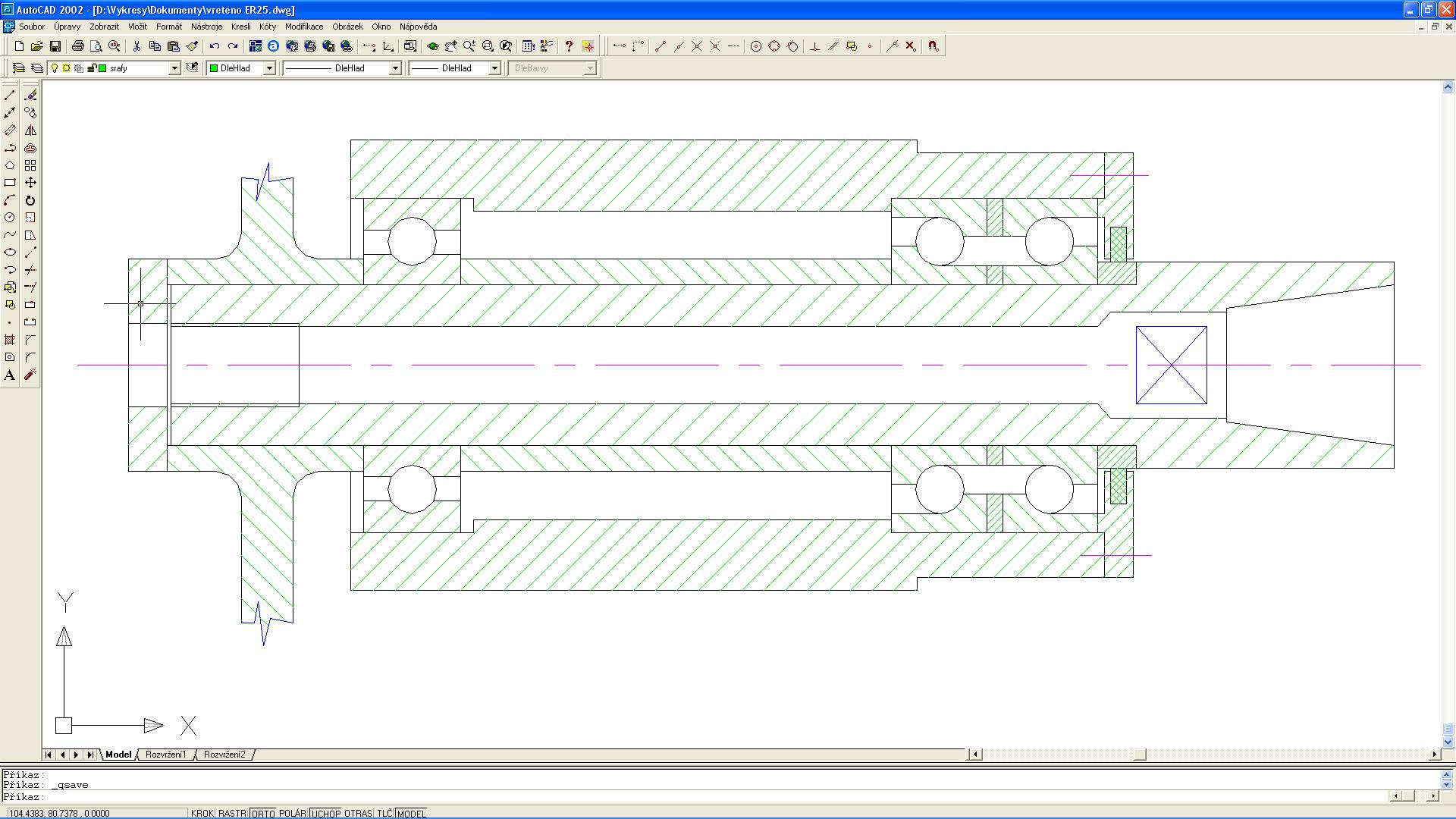 Tak sem to jeste predelal s tim vickem a tesnenim, jinak podlozky mezi loziska neni problem nabrousit takze to bude podle testoneho :wink: a udela se jeste jedna uplne pod prvni lozisko, na vykrese je videt, je to tam z duvodu tesneni a bez podlozky by se me to cely schovalo a nedostal bych se klicem na ty nafrezovany plochy co jsou na trnu(z duvodu pridrzeni vretene pri povolovani klestiny)Tesneni v tom prednim vicku bude nejaky filc, otec toho ma doma dost, ma i udelane kulate sekace pro vyseknuti potrebneho prumeru, myslim ze proti sponam uplne v pohode, emulzi tam nemam
