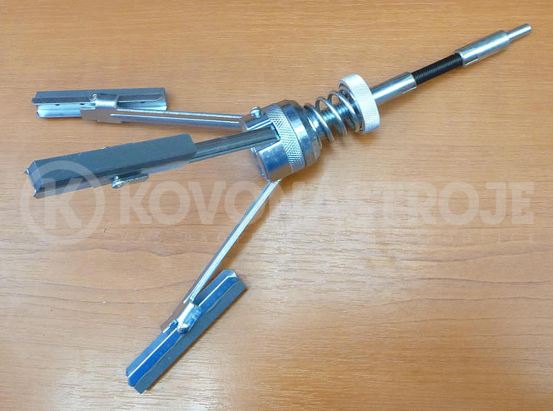 a hlavy Ta hlava vypadá takhle, a rozhodně se neprohne a nekopíruje povrch Roztažitost se u tohodle typu hlav mění nastavením prstence s noniusem, ten teda pak pujde pryč, protože mašina umožňuje všechno ovládat na vřeteníku, což je pohodlnější. (Plný kloubový trn se akorát nahradí za dutý jehož středem prochází 4 hran)