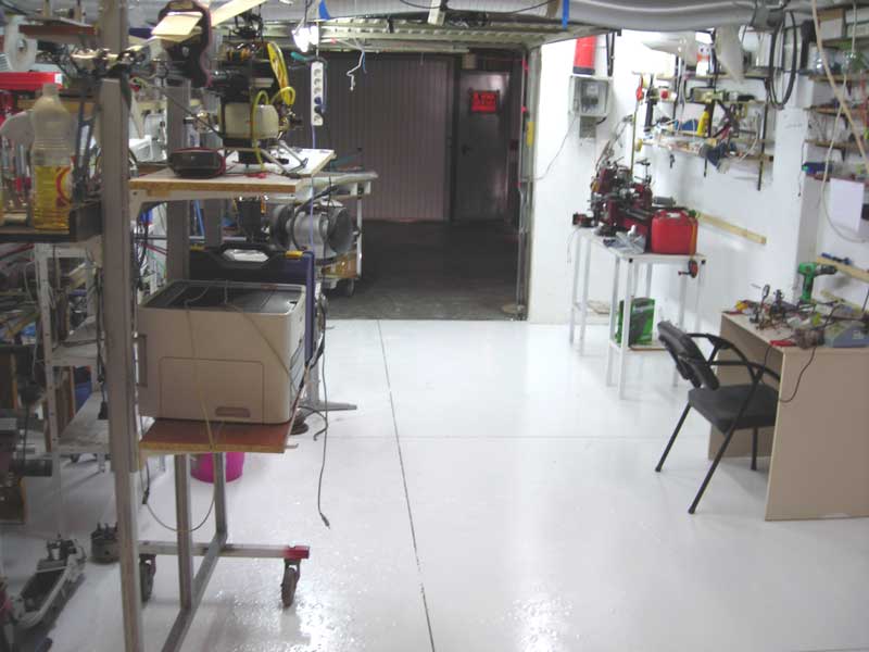 Dílnu mám přes 100m2 a 2 kamrdlíky po 25m2. Dlažbu ale dám jenom tam, kde je největší provoz. Asi na 2/3 "velké" dílny. Potřebuju ještě přivézt a usadit soustruh, lis a jiné kraviny. Tahat to přes novou dlažbu je blbost. Všechny metry ještě nemám koupený, protože jsem je najednou neuvezl. Podlahu mám vysátou od prachu a natřenou penetrací.