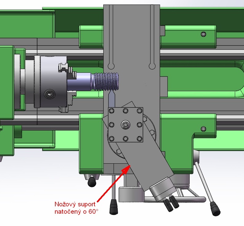K tomu natočení nožového suportu tady zrovna mám obrázek. Tohle nastavení se používá, když chci použít boční přísuv (http://crstools.cz/wp-content/uploads/2 ... isuv-2.png), který dává užší třísku a tedy menší řezný odpor, nůž/obrobek potom nedrnčí.