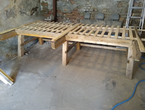 Napřed bych na to vyrobil "šablonu", co které by se zakládaly jednotlivé trámky a prkna.