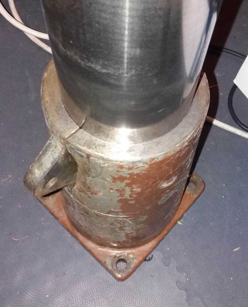Každopádně pokud bez sváření, tak uříznout zbylý ucho, udělat dvě půlkruhový objímky z pásoviny a sešroubovat. Pásovina třeba 60x10 a k tomu 4 šrouby M10