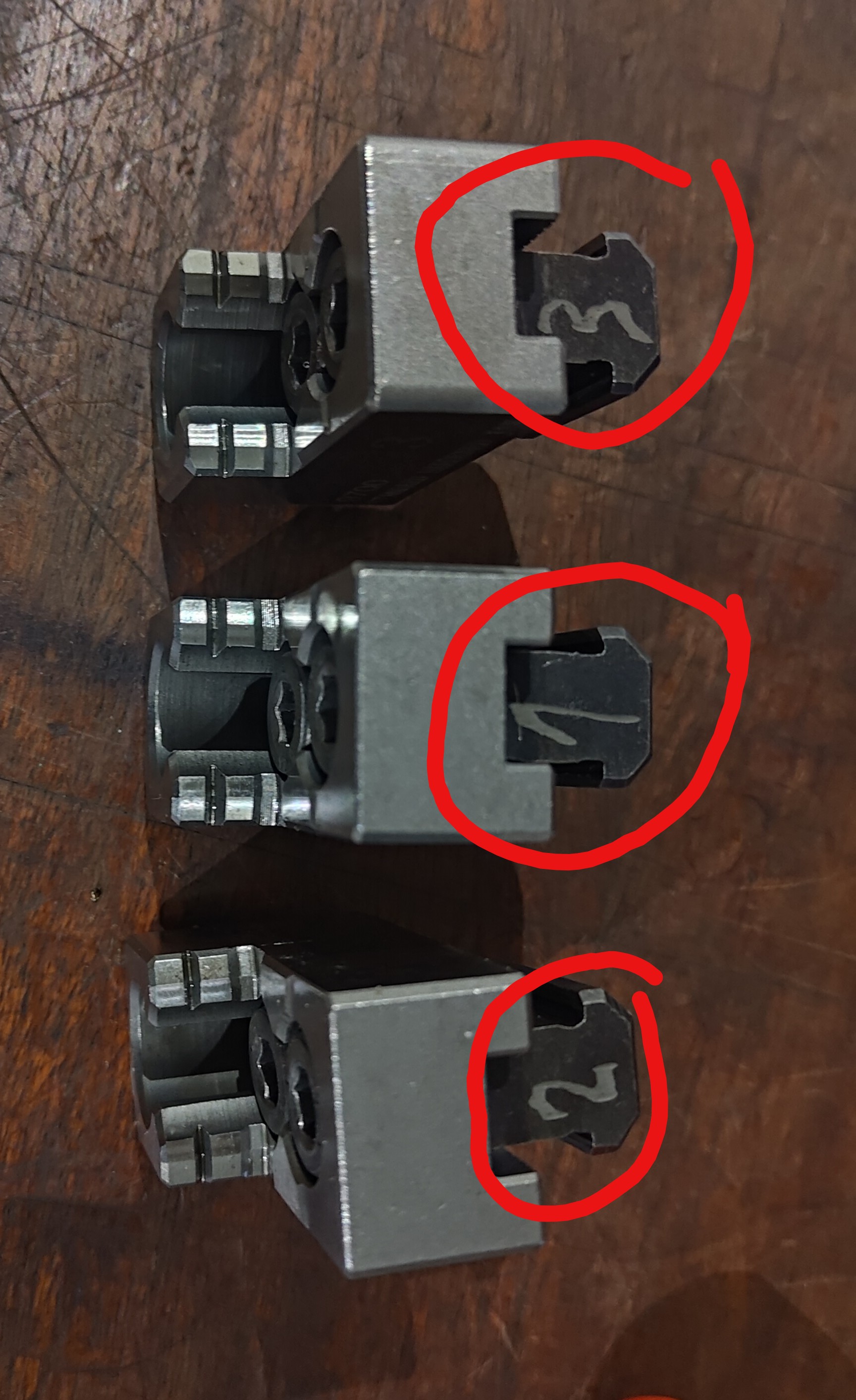 2, ze začátku jsem měl problémy s opakovatelnou přesností při měnění čelistí. Vodící kameny(matice) jsou broušené docela žalostně - nejlépe si vyrobit nové. Zjistil jsem že když kameny popíšu 1, 2, 3 (stejně jako u čelisti) a nepřehazuju je mezi sebou, tak je přesnost při měnění čelistí přijatelná