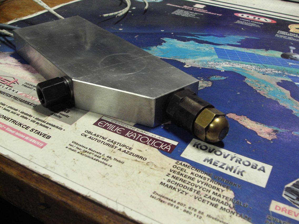 Josef píše:Napřed vyvrtej ty dvojky díry a můžeš je klidně napřed navrtat a potom dělej teprve ty díry v ose. A nechej tam ty závity G1/8 a G1/4, pak ti budou pasovat přípojky. I když se dají sehnat i metrické...
