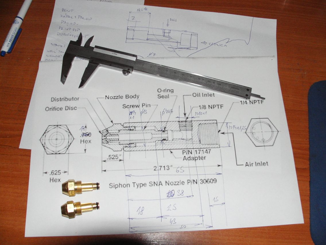Silně uvažuju, že se na ten jejich systém vykašlu a vyřeším to zase nějak po našom. Dyť můžu do adaptéru naletova mosazí vzduchovou trubičku hned tam co končí závit pro trysku, čímž nám odpadne zadní připojení vzduchu ale bude přivedený z boku vedle přípojky oleje.