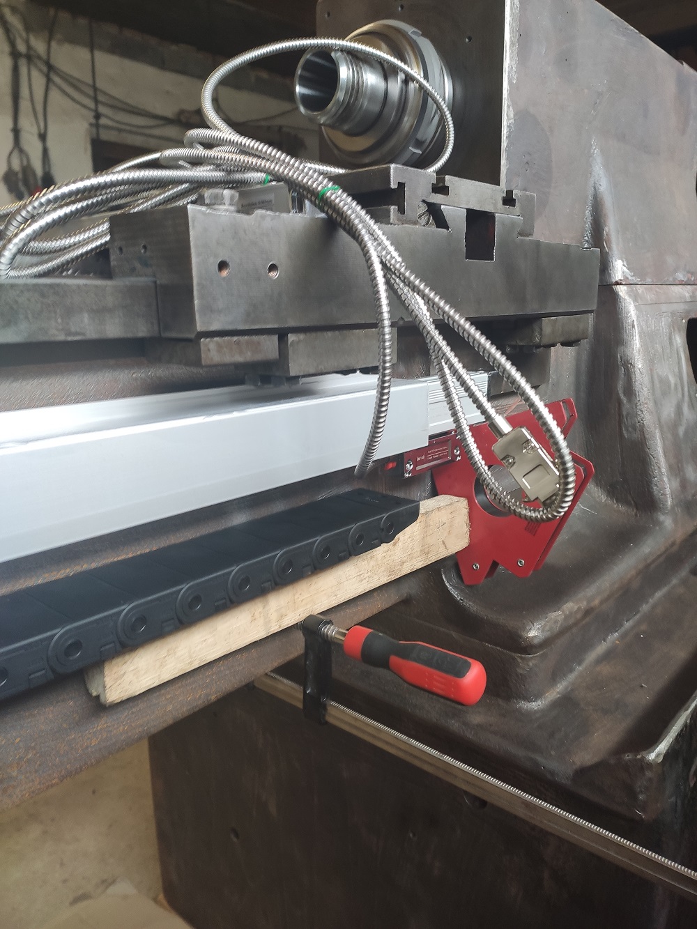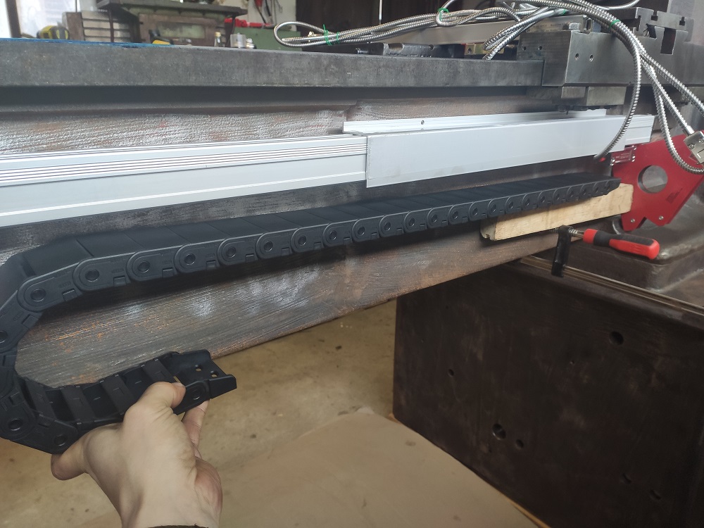 Malý update i ode mě, ať je vidět, že ještě žiju. Koupil jsem pravítka (160 cm rozlišení 5 um a 35 cm rozlišení 1 um) a kabelový řetěz. V něm bych chtěl vést napájení displeje DRO, napájení lampičky, možná hadičku s emulzí. Všechno tohle by mělo být přidělané přímo na saních.