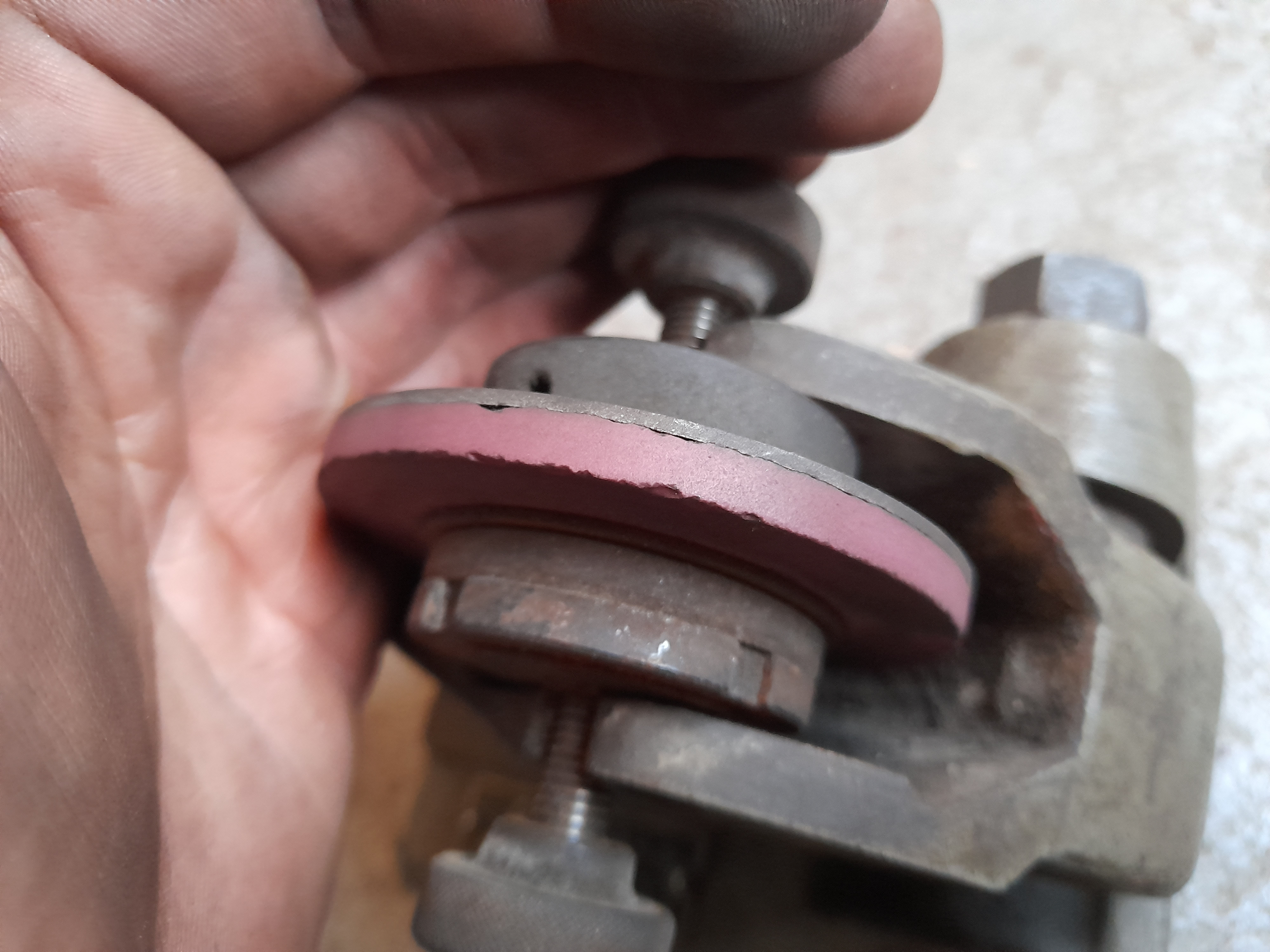 Jestli ten kotouček má bít kolmo k brus. kotouči, nebo jesti jen hranou ?