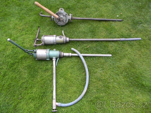 Jo pak je ještě jiný případ ruční pumpy, tu máme v práci na naftu. Ta je ale ještě na staré sudy s obručemi (ty alespoň mírný tlak snesly), tam skutečně pumpou nafukuješ vzduch do sudu a jím je nafta vytlačována trubkou ven. Viz. první obrázek, spodní dvě pumpy.