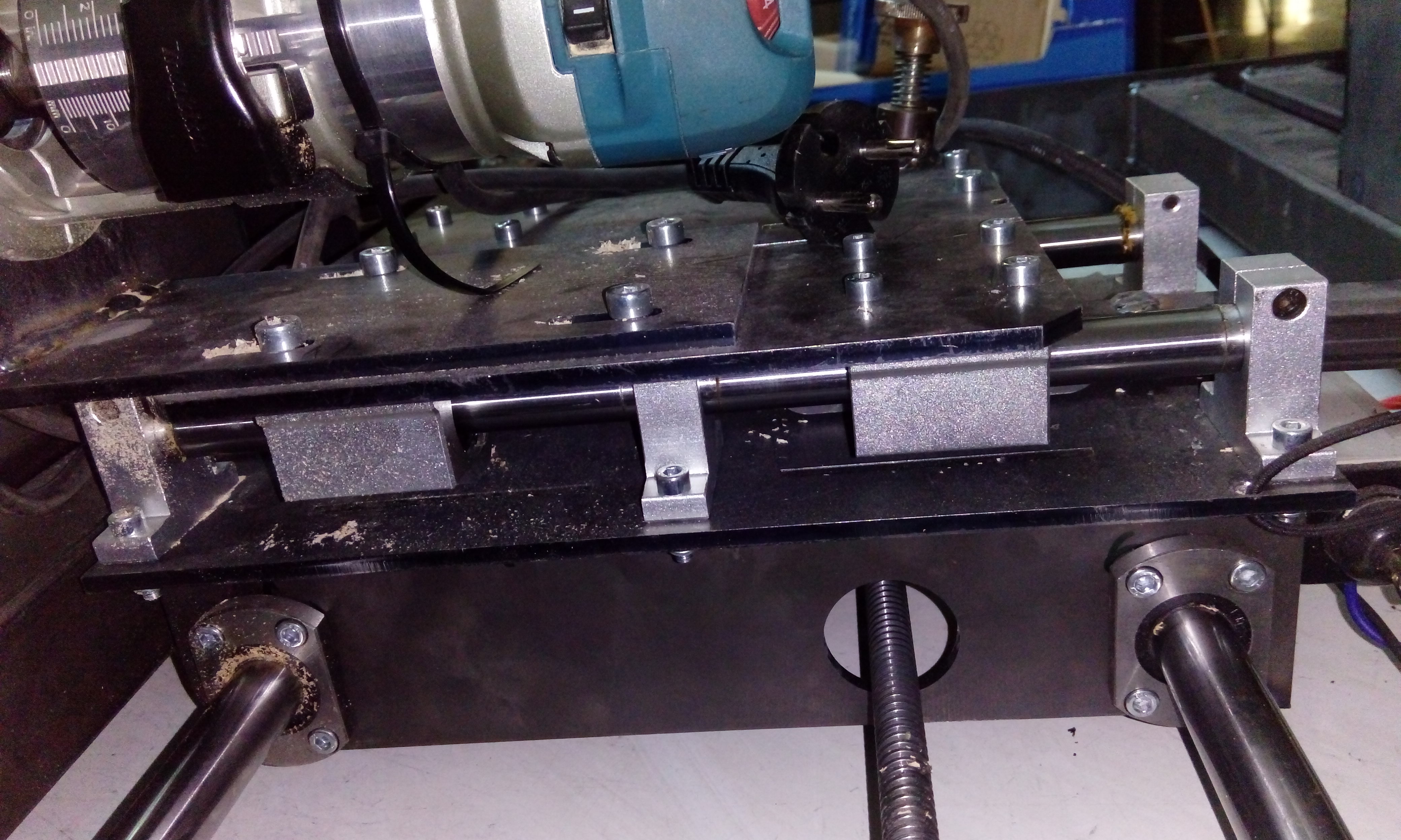 Tyč 16 spodní jsou 20ky to není důležitý, jde o to 3 bodové uložení a spojovací prvek X-Z tyčí.Jinak je to kopírka na dřevo s rotační osou .