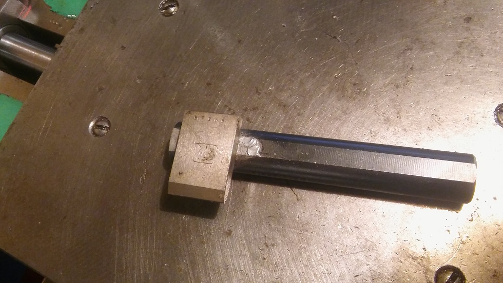 Natocim orovnavac tak, aby byla hrana diamantove desticky lehounce pod osou (zaroven to vychazi na sklon asi 10° coz by melo byt spravne. Naklon ve smeru posuvu jsem pri pajeni desticky dal minimalni, asi 1-2°.