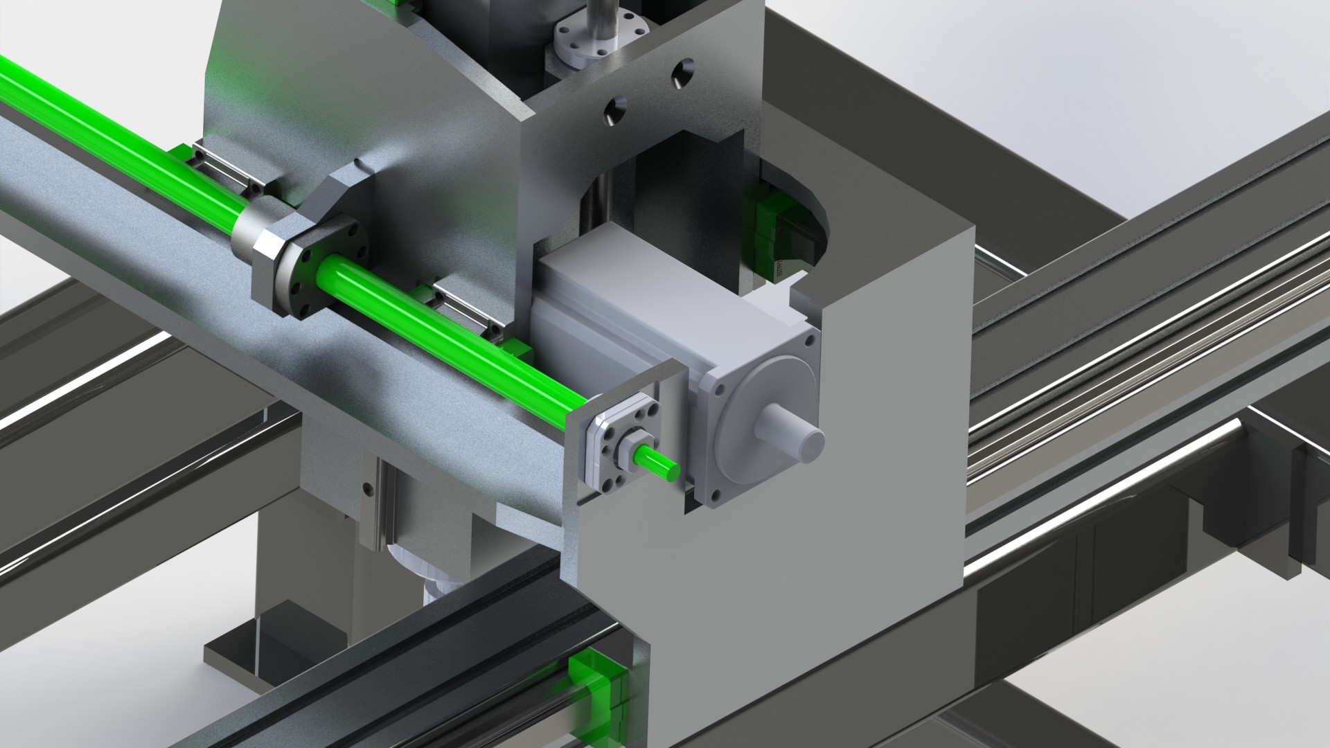 A nakonec bych udělal ještě jinak Z-tovou osu aby byla "rovnoběžná" s Ynem a ne kolmá na něj (snad chápeš), protože mi přijde, že na jedné straně se připravíš kvůli tomuto provedení o kus Ynu (kudy povedeš šroub?)