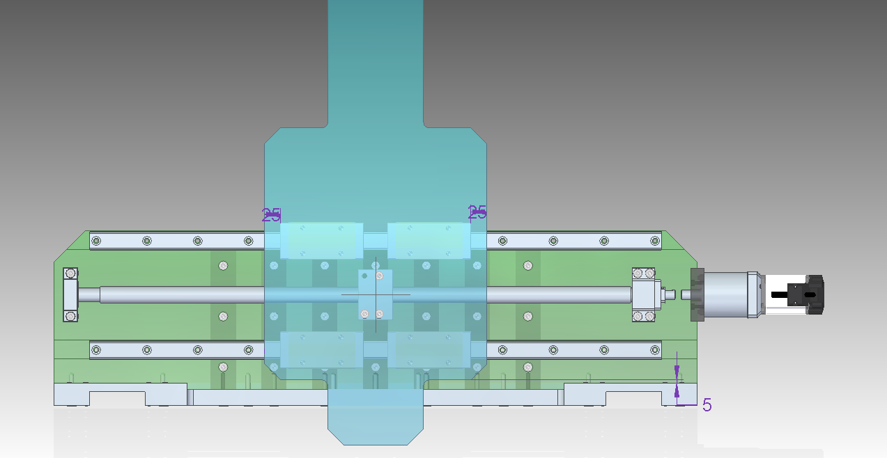 Na modru planujem dat linearne vedenie po celej vyske.Tak aby som dosiahol vysuv 400 mm.