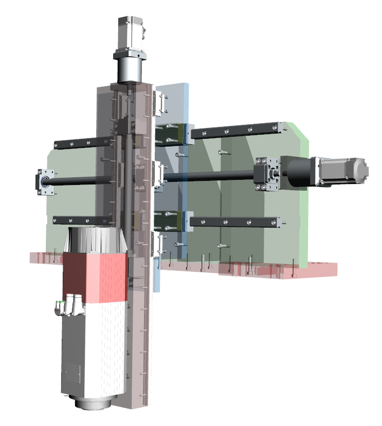 Aktuator bude mat 2x linearne vedenie HGR15 a 4 voziky.