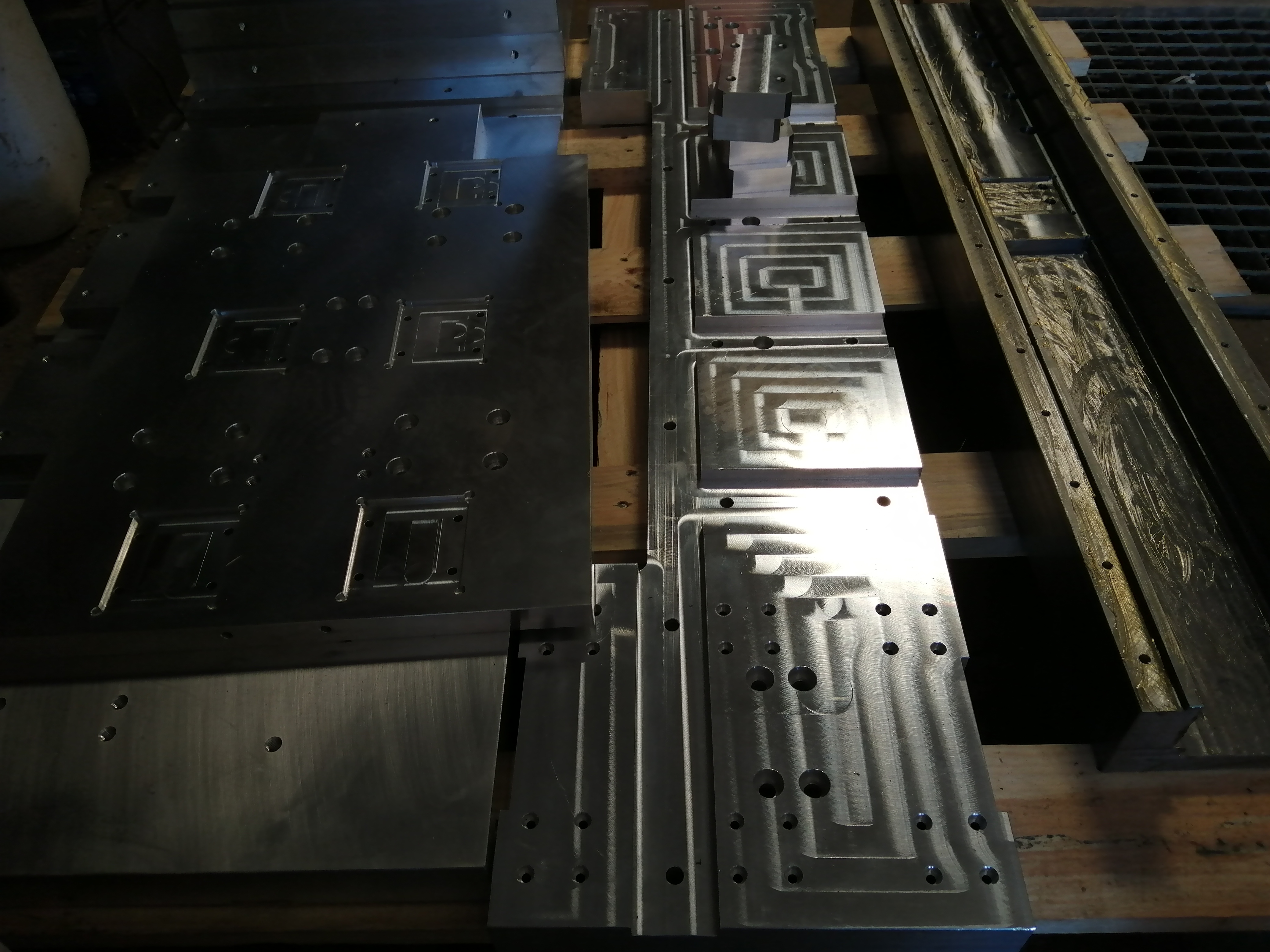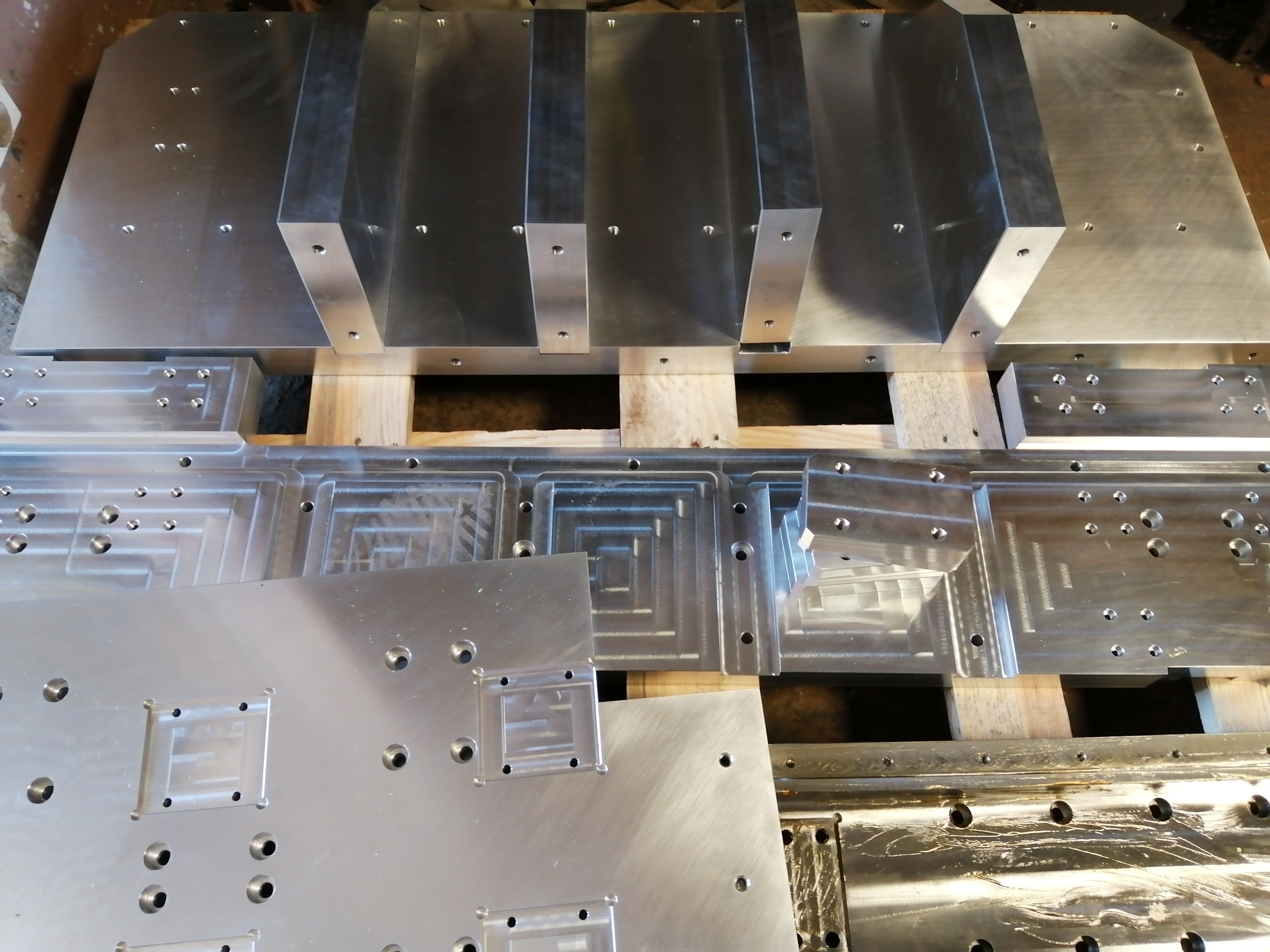 Takze ocel je S355 a dural je 5083. Y os je z duralovych dielov o hrubke 35 a 40 mm.