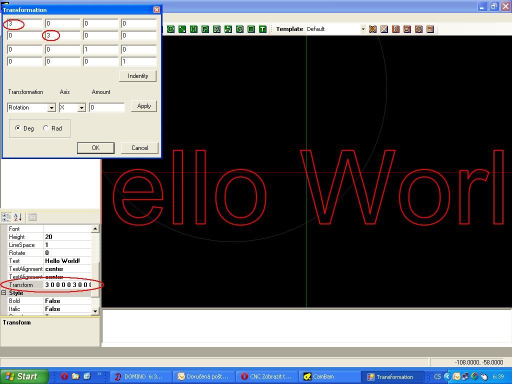 políčka z leva jsou jednotlivé osy X,Y,Z,(rotace) pokud změníš číslice "1" na jinou hodnotu (třeba jako já na 3) tak zvětšuješ, nebo zmenšuješ. Úplně spodní políčka jsou posun po ose, ostatní jsou sklon a rotace. Doporučuju vyzkoušet.