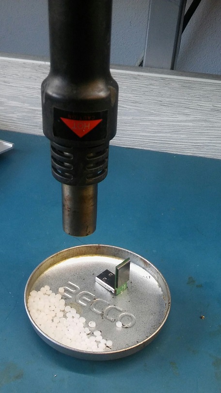 V ambulancii teplovzdušku nemám, tak ho dával do vrelej vody z kanvice. Funguje to dobre, voda sa ľahko vytlačí a na tie dlahy nevadí, že to je na začiatku mokré. Ale na serióznejšiu prácu je to horúcim vzduchom asi lepšie.