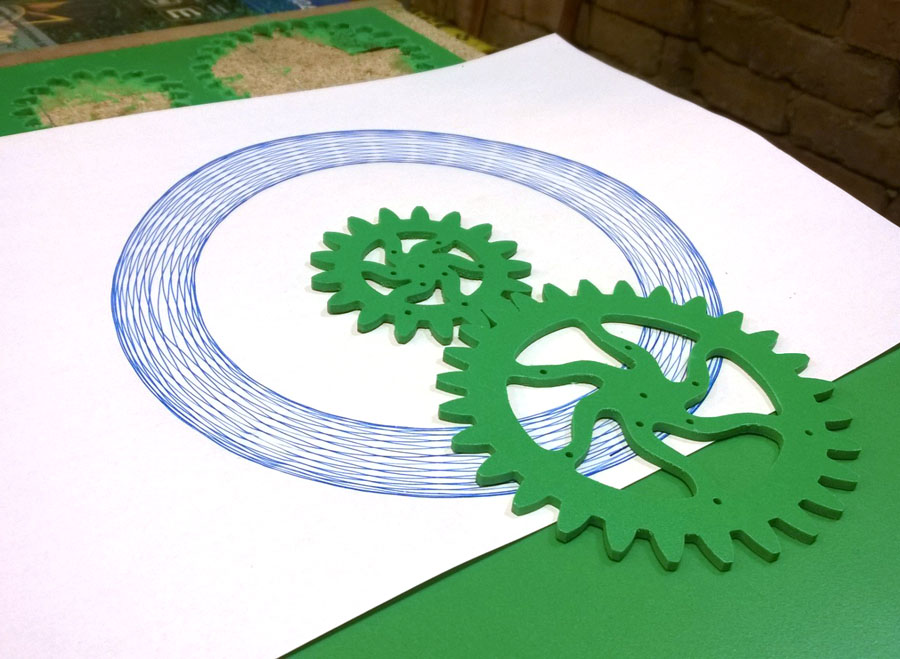 ... jo v pohodě, jen bych doporučoval ten větší kotouček udělat naopak, jakože vnitřní ozubení a kolem jen o cca 15mm větší lem, když se to obkružuje tak se to snaží vyskočit odsebe, dospělý pohoda, dítě asi neudrží přesnost, s tím vnitřním ozubením by to šlo :D ... tady je dxf: