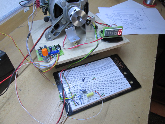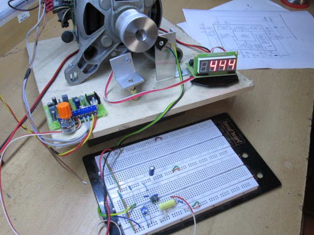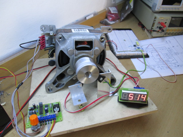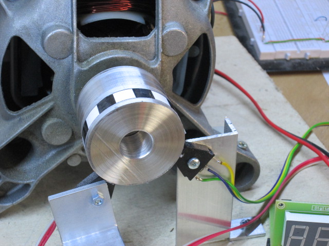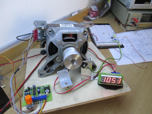 Příčinou cukání v motoru je práce této smyčky, pořád dorovnává otáčky a fázové regulace udělá zbytek. To cukání se projevuje více či méně u různých motorů jinak, ale je tam pořád. Prvně jsem si myslel, že bude chyba v signálu z tacha, ale nebyla. Amplitůda signálu z tacha je konstantní v širokém rozsahu otáček (cca 500 - 23 000ot. /min. s napětím 6V). Dle mého názoru, tento jev je neodstranitelný. Dalším mím pokusem bylo, nahradit tacho enkodérem s převodníkem úrovně. Výstup enkodéru jsem připojil místo tacha k regulátoru. Výsledek byl stejný jako s tachem. To byl dobrý poznatek, že pokud vybavíme motor, který nemá tacho enkodérem, tak se dá zapojit jakýkoliv sériový motor k tomuto regulátoru.