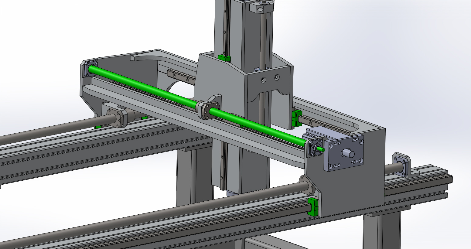 A ještě k tomuto stroji. Na první pohled co praští do očí, je osa Y, kde se mi při její délce zdá příliš slabá - chtělo by tam přidat pořádnej kus materiálu. Lineáry na ose X bych dal z důvodu jednoduchosti nahoru. Stejně tak by chtěly nahoru i na ose Y, ale tam by se muselo vymyslet upevnění vozíků na Z. Ale je to taky lehce řešitelný.