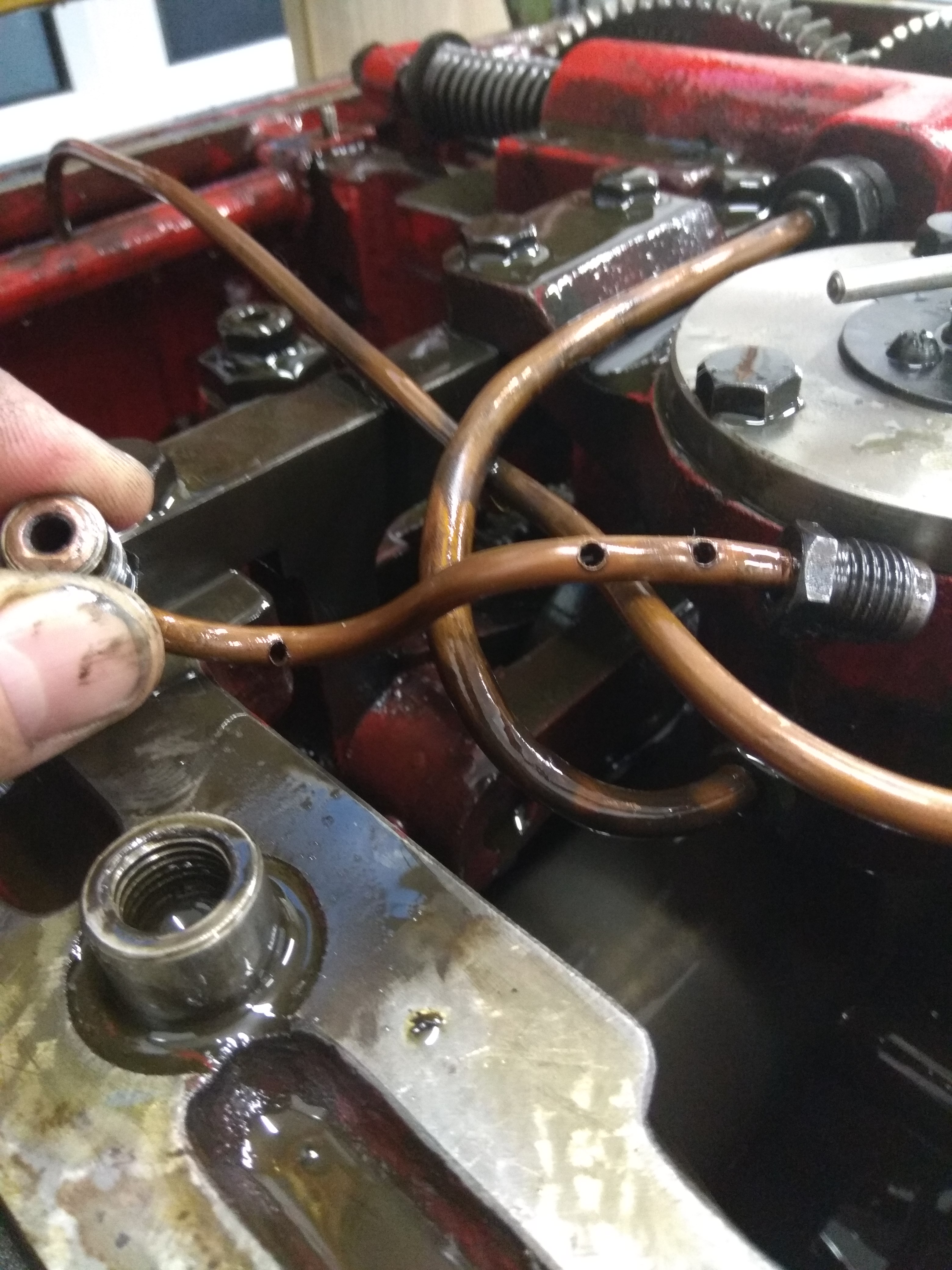 Vypral jsem stírací filtr, sesadim a kontroluju jak to maže a koukám, že s trubky co vede k zadnimu lozisku vřetene teče olej jak kdyby byla trubka prasklá, tak ji vyndám a ona má vespod 3 díry, máte to stejně?