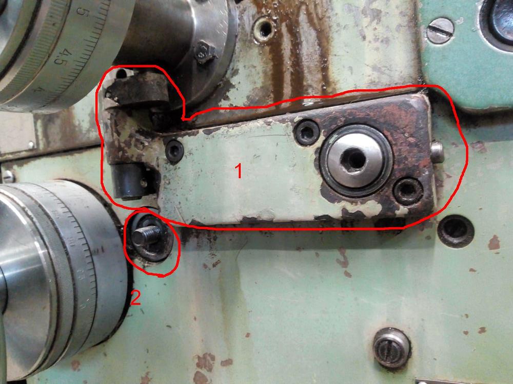 To co máš v 1) je soustava táhel která zajišťuje to, když zařadíš strojní příčnej posuv, aby se ti odpojila klika, aby ti při zmáčknutí rychloposuvu madlo neurazilo koule.