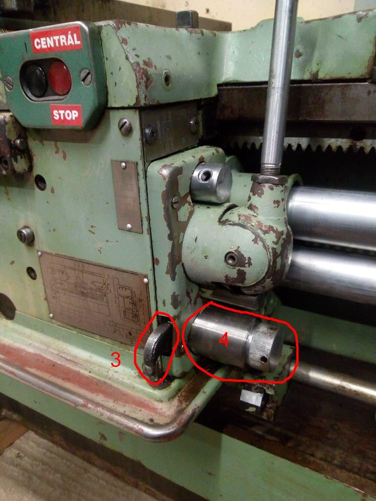 3) Z čela suportu dole, u spojky je takovej háček. Funkce je taková, že ti suport najede na doraz, a spojka vystaví, a vyskočí ten háček. Rukou popjedeš zpátky a háčkem zase odblokuješ spojku a zase jedeš.