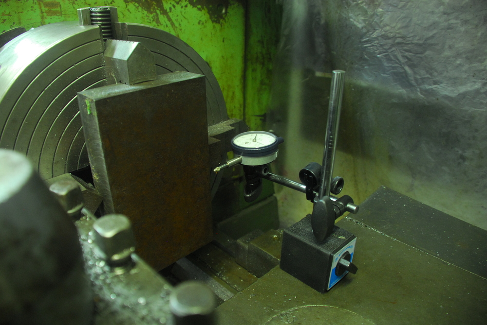 Házivost příruby 0,003, víc mě to za boha nešlo, možná v tom hrál roli ten nepřesnej výpalek(měl bejt větší a to napálený se mělo odtočit pryč.) Házivost obrobku se dá paknama vyrovnat do 0,005, pak už nastupuje vygrglaný přední ložisko na vřetení a stačí se o to lehce opřít a začne to cestovat. Chce to vychytat grif jak to rychle centrovat. Opakovanost při centrálním rozevření a sevření se pohybuje kolem 0,1. Příští tejden bych měl mít nabroušenou tyč, tak to pujde měřit o něco líp.