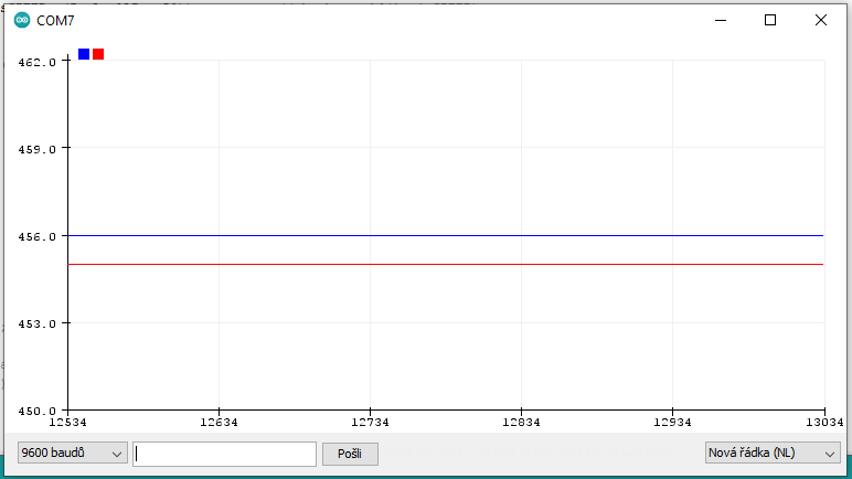 Tak jsem bádal dál a přišel jsem na to, že když měřím z obou vstupů (A6, A7) tak se výsledek trošku zhorší (levá část grafu). Zkoušel jsem dávat pauzy mezi jednotlivými čteními analogových vstupů, nebo je i číst vícekrát, ale nepomohlo to. Ovšem největší binec do toho vrazí ty obyčejné blikající ledky (pravá část grafu). Ovšem bavíme se stále o chybě do 0.5% z rozsahu, takže vliv na funkci rostlináře to mít nebude.