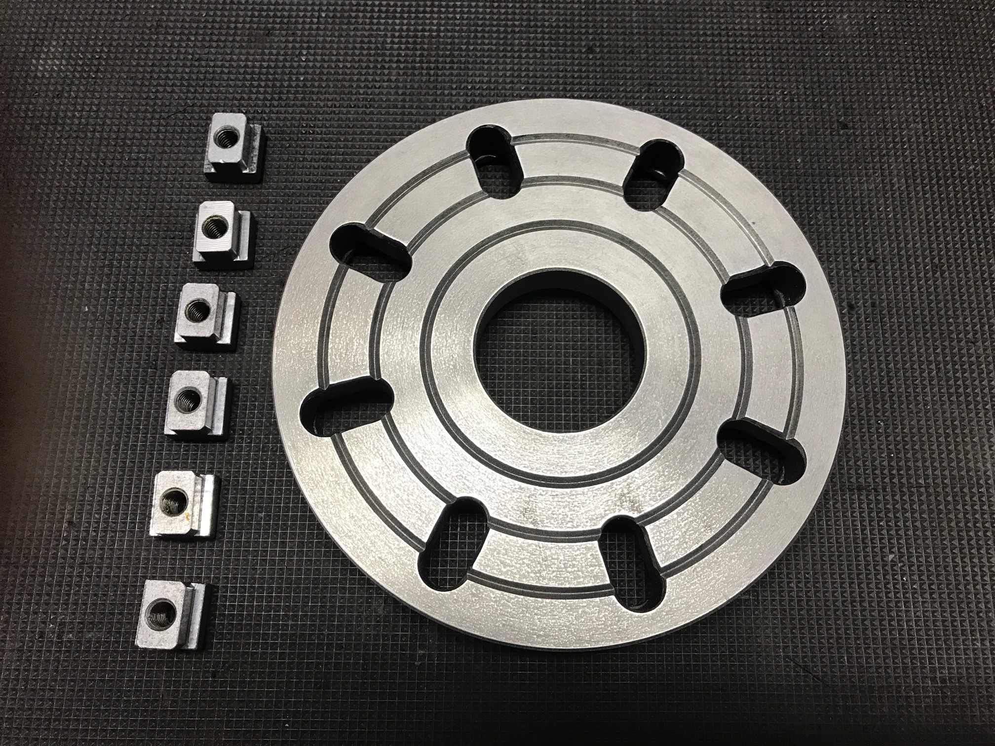 Zklamání přišlo po nasazení na soustruh - házela jak sviňa. Protože problém zjevně není v desce broušené naplocho na magnetce, konzultoval jsem a pátral. Chyba samozřejmě pochází od vřetene (příruby). Naměřené hodnoty jsou v popiscích fotek měření.