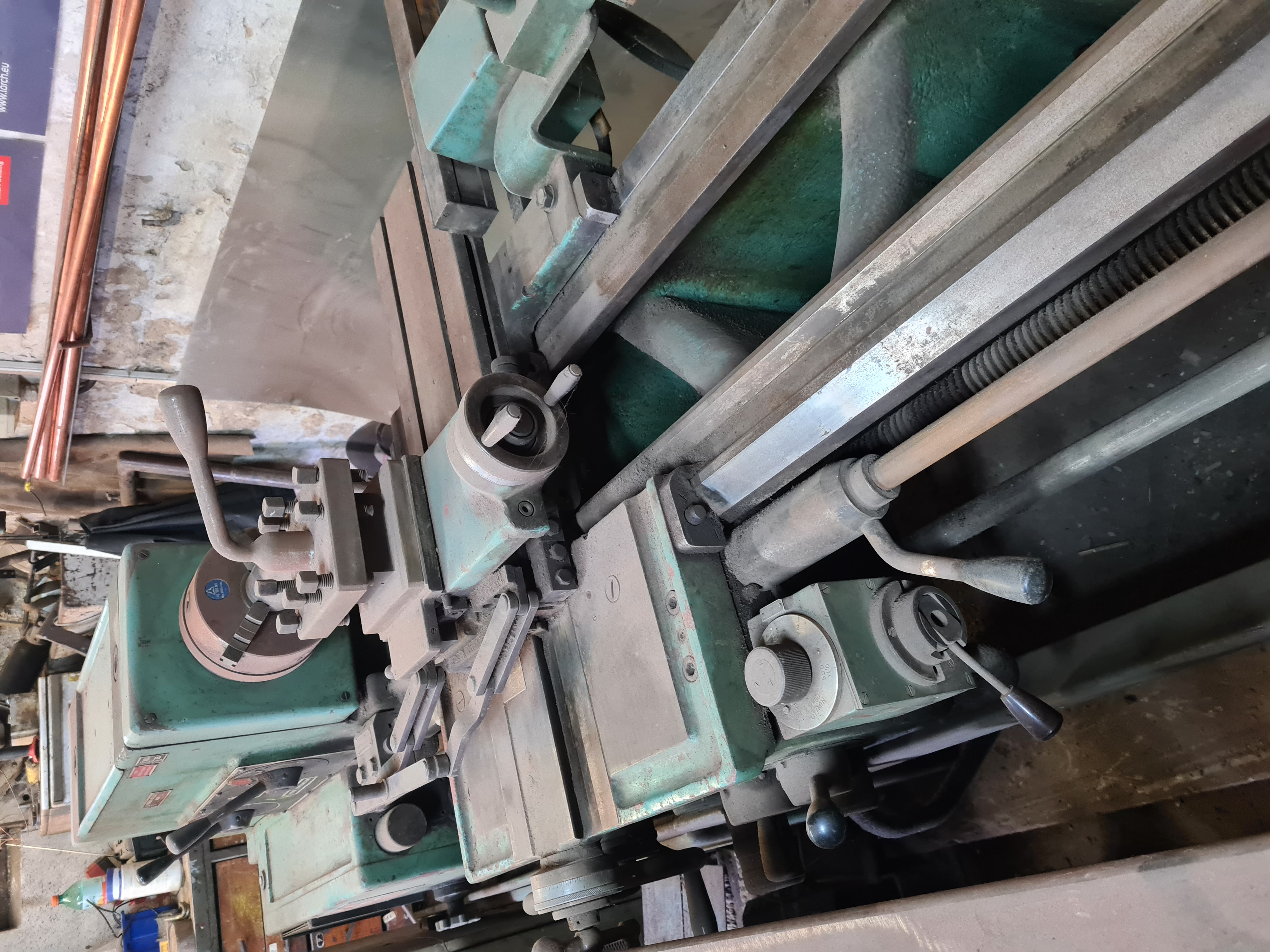 Popravde neviem ako je to urobené. Priečny pojazd je len manuálny a vedenie je klzne - mazané buď tlakovo impulzne alebo hydrostat, keď zistím napíšem. V každom prípade priečne vedenie je na dvoch C profiloch.