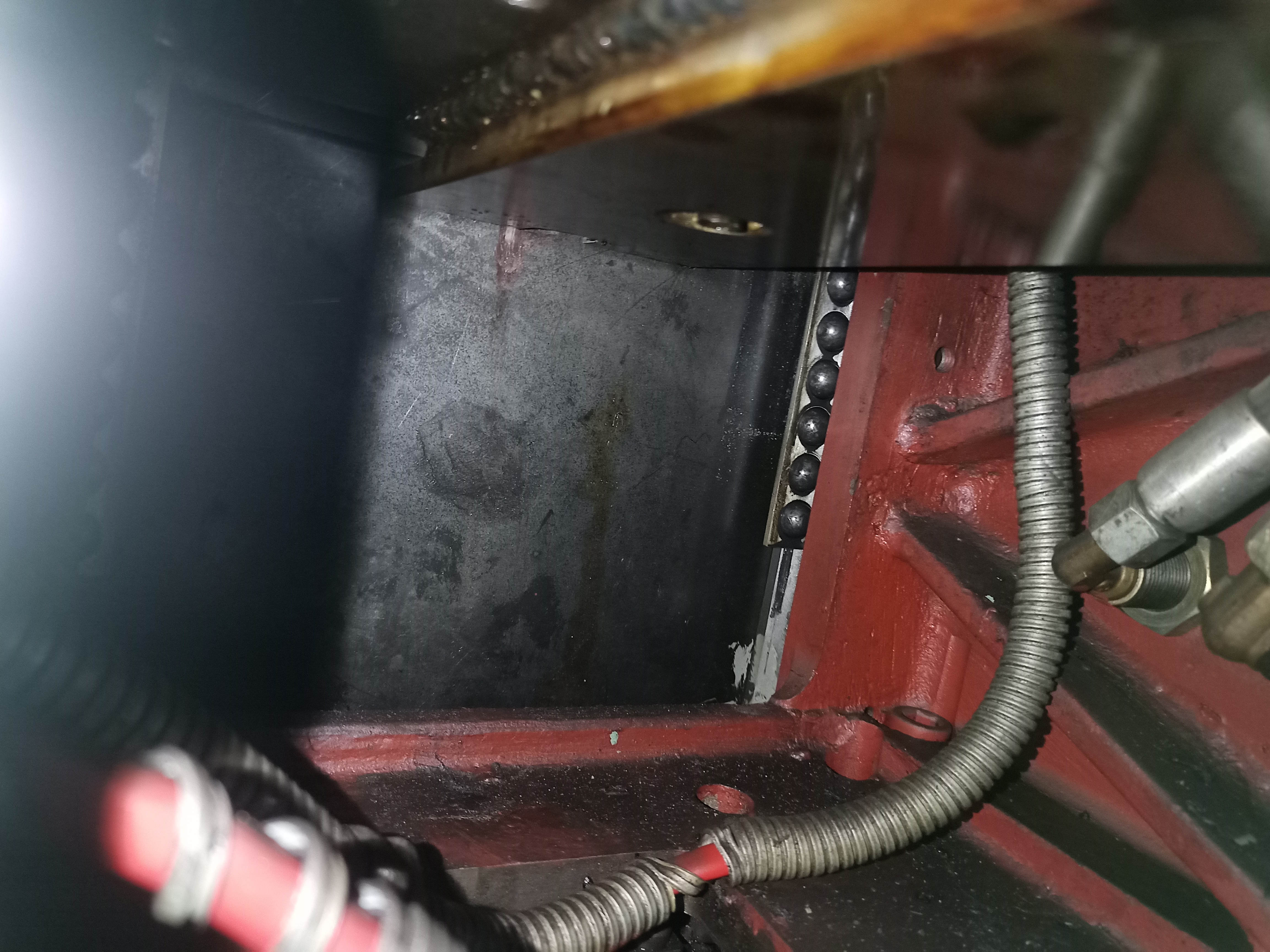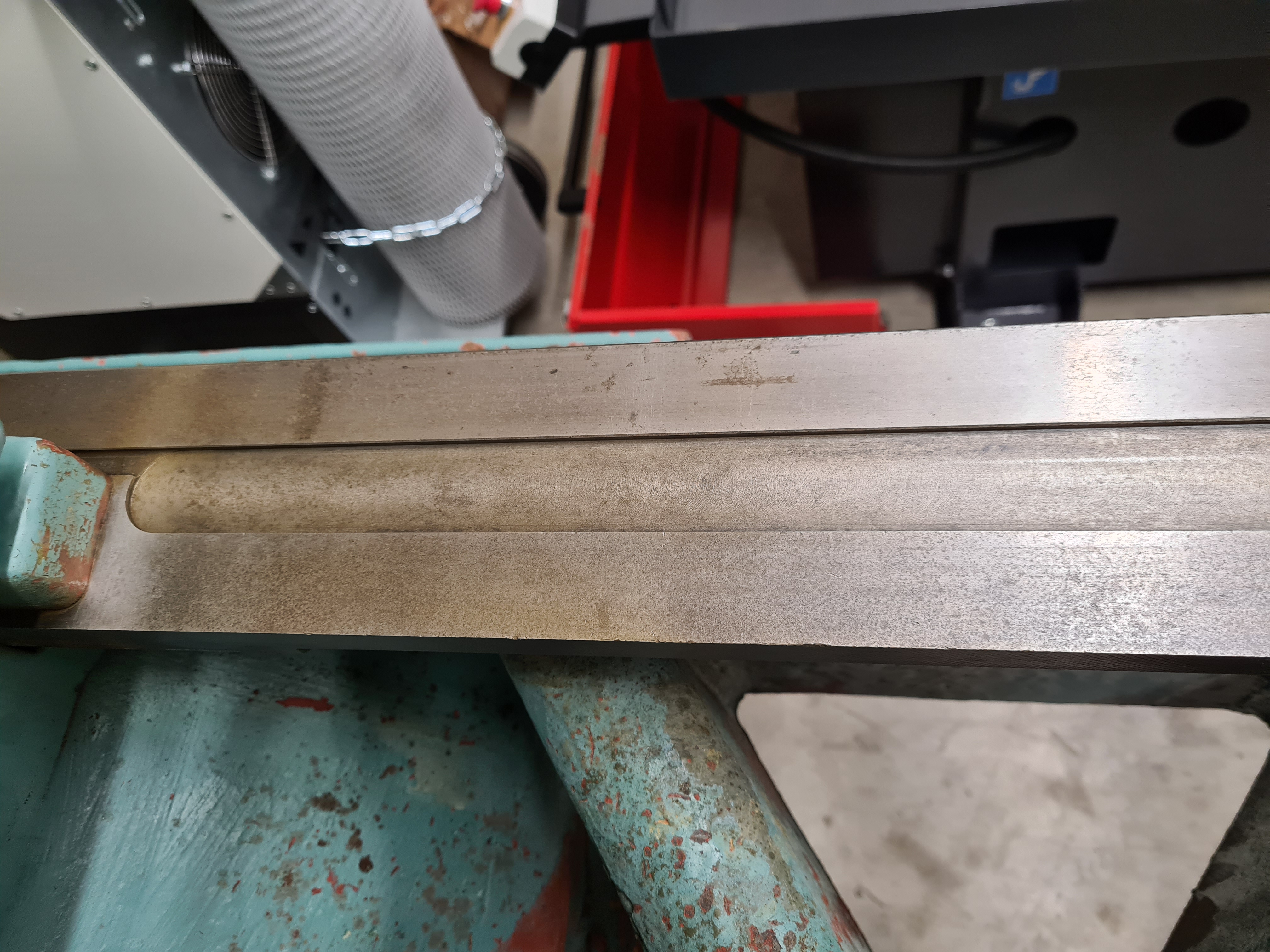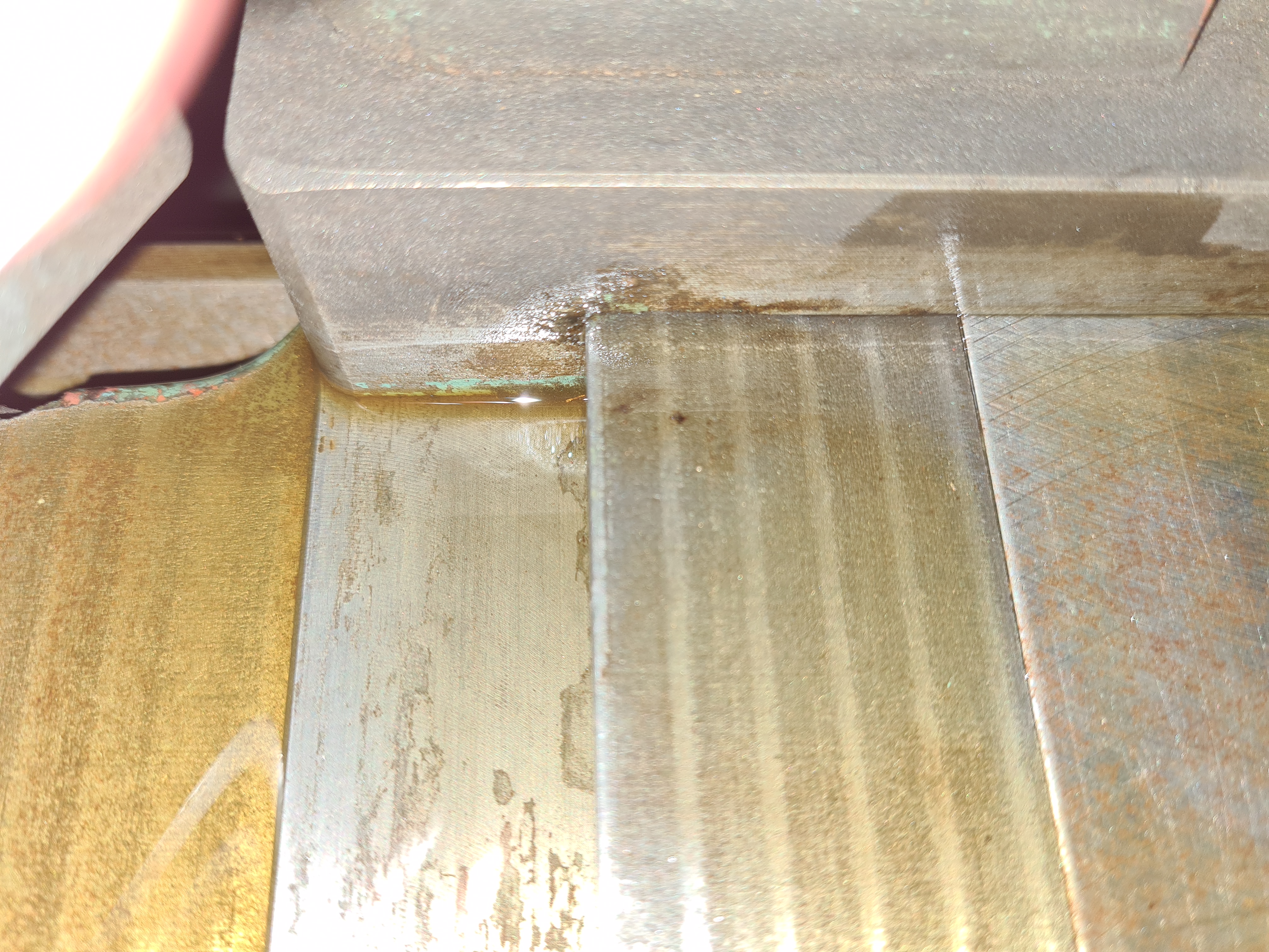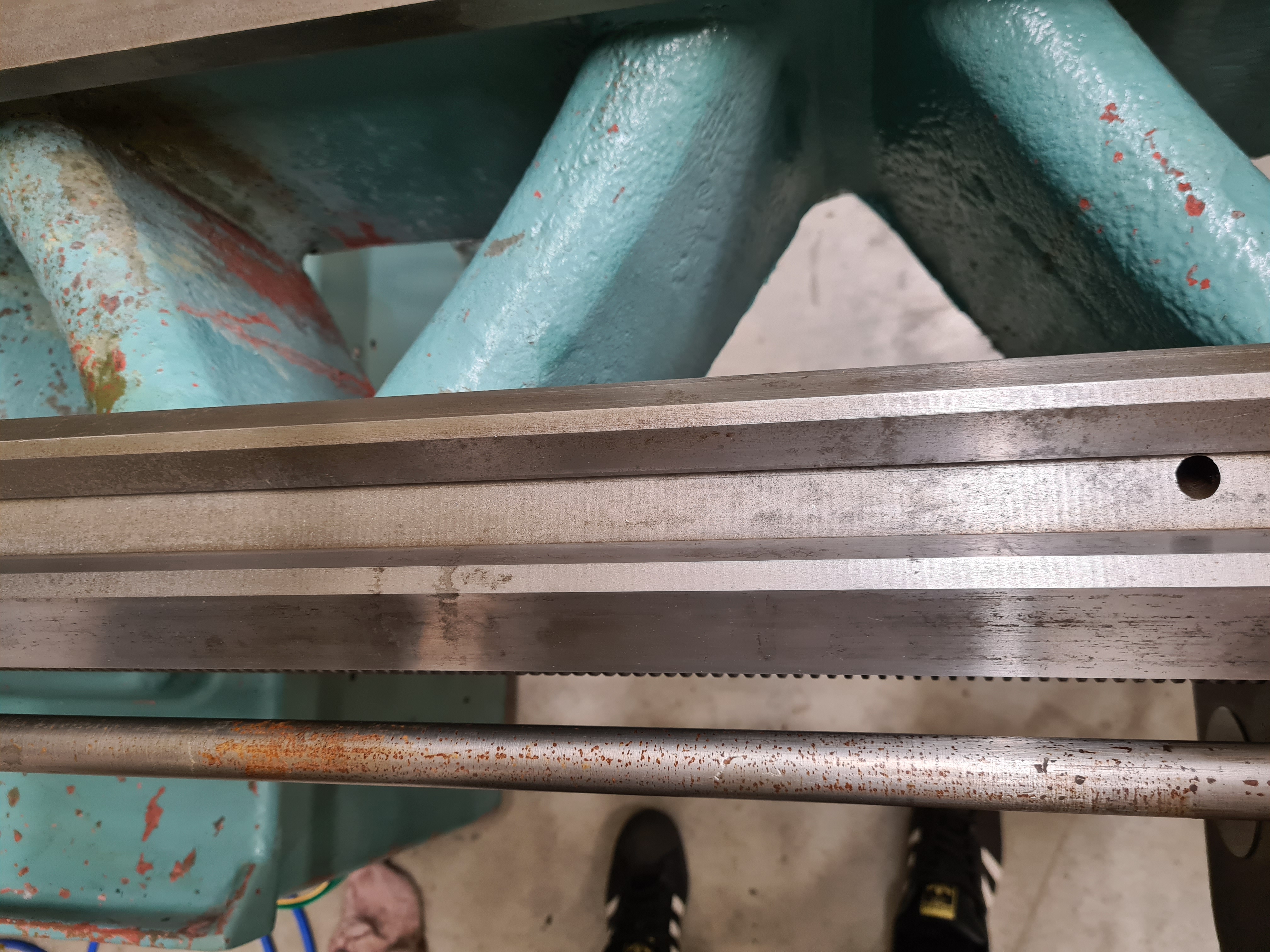 Vedeni nozovych saní, vedeni pricnych saní, vsechno je krasny, bez ošoupání, rýhy vůbec, kliny nadherne, barva ve vane pod lozem taky nad miru dochovana temer vsude....ten škaredý povrch ani rzí nenazývam, na tech fotkach to hodne klame, ten povrch jsou jen fleky... budu to chtit zaleštit, zatím na to jdu jen s mosazným kartacem, pak zkusím rakso, nebo se na to úplne vyseru :D