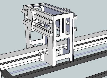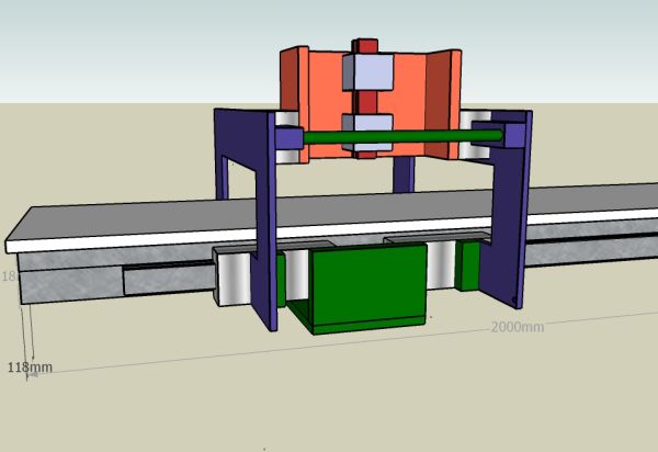 Na vlastní traverze by měl ležet "zastamdací" vakuový stůl, spolu se stolem s T drážkami, obojí šíře 400, délky 400 a 1400, pohodlně se tam vejdou, místa na dvou metrech dost. Osy Z budou vlastně dvě, spřažené, jedna pneumatická, druhá klasická se šroubem. Portál- vyžíhaný svařenec se zafrézováním pro vedení, X,Y velikost 35 od Rexroth. Osa Z se šroubem, má velikost vedení 15. Poháněné matky na X,Y, kuličkový šroub 20x5mm.