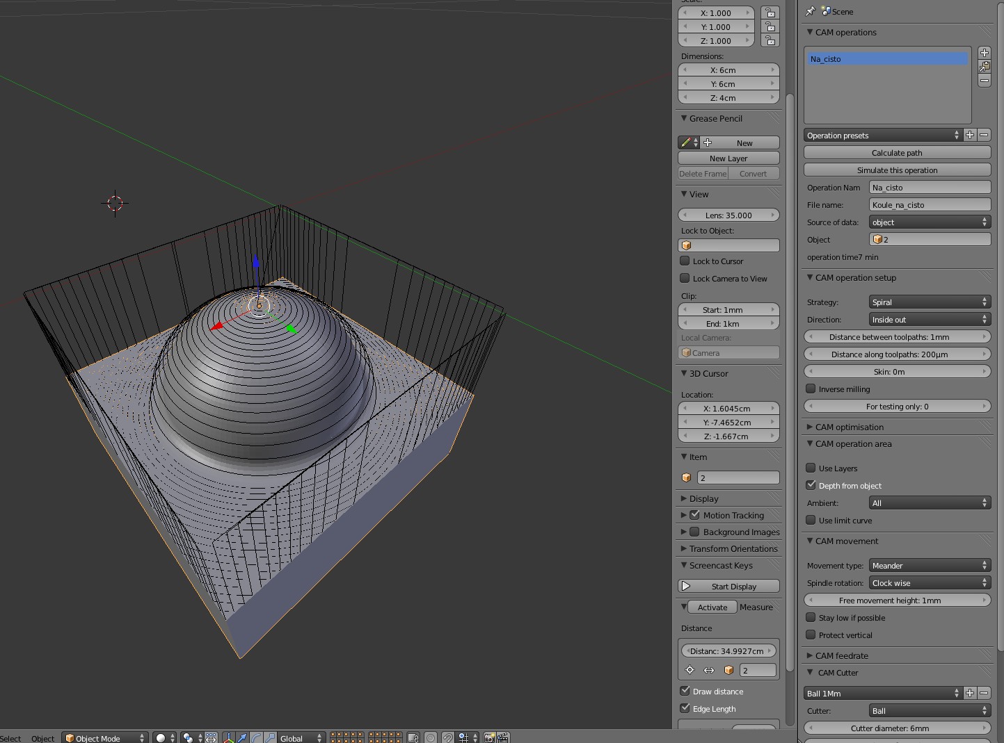 Tak další ukázka. Spirálové obrábění koule, což mi chybělo snad ve všech CAMech, co jsem zkoušel. Je vidět, že iccha je borec. Jeho dílo je docela použitelné na obrábění dřeva. Problém je, jak získat kvalitní stl. Z mého cadu byl export koule jako hrubý mnohouhelnik, i když jsem zkoušel nastavit kvalitu zobrazení na maximum. Poradil jsem si přes export stepu do prohlížeče 3DTool (lze stáhnout trial) a z tohoto prohlížeče vyleze stl mnohem jemnější.