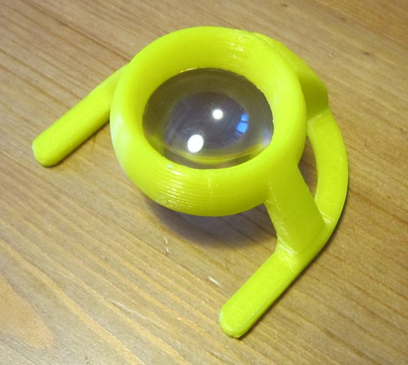 Jedná se o držák lupy pro slabozraké (prateta, 80 let), výška cca 40mm, sířka a délka cca 70mm. Komerčně koupený je každou chvíli ulomený, a stojí neadkvátní sumu (cca 1200,-).